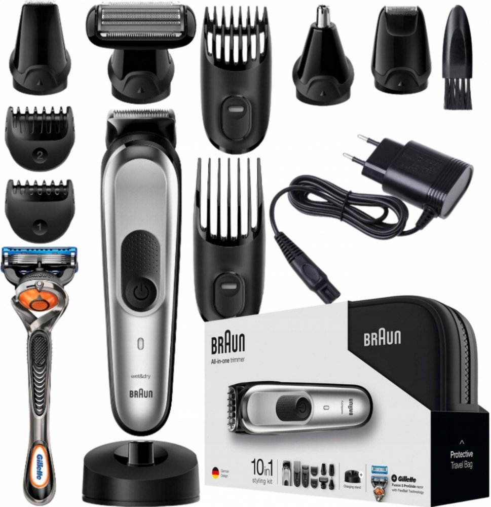Strojek Braun MGK7920TS je vybaven několika druhy výměnných hlav a zastřihovacích hřebenů. Díky této výbavě ho můžete snadno použít k zastřihování vousů nebo vlasů a k úpravě chloupků na těle, v nose nebo v uších. Váš vzhled tak bude dokonalý za pomocí jednoho přístroje.