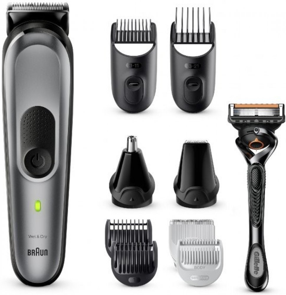 Stylingová sada Braun 10v1 pro péči od hlavy až k patě: vybrané nástroje pro zastřihování vousů, chloupků v uších a nose, zastřihování vlasů a úpravu celého těla.