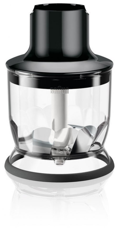 Příslušenství v balení: mixovací nádoba 3v1 o objemu 1,25 l, sekací nástavec (350 ml), šlehací metla, plastová nádoba bez BPA (600 ml)