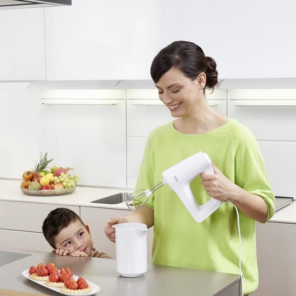 Ergonomická rukojeť vám skvěle padne do dlaně a umožní rychlou a snadnou práci. Podle typu mixovaných surovin si zvolte jednu z pěti přednastavených rychlostí, aby výsledný mix vypadal přesně podle vašich představ. S příkonem 450 W si přístroj hravě poradí i s tvrdšími surovinami, které do výsledného těsta rovnoměrně promíchá. Pokud vám základní nabídka nestačí, aktivujte turbo režim a zvyšte otáčky na maximum.