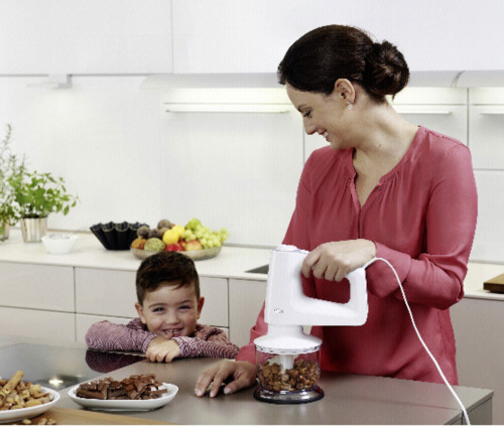 Systém ComfortClick pro příslušenství - díky důmyslnému designu lze všechny nástavce ručního šlehače intuitivně připevnit vpředu a umožnit tak zachovat stejně pohodlnou polohu ruky při mísení, mixování i odpočinku bez ohledu na použitý nástavec. Protože stabilně stojí se všemi nástavci, pracovní prostor zůstává čistý a vy můžete rychle a bez přerušení přejít k dalšímu kroku.