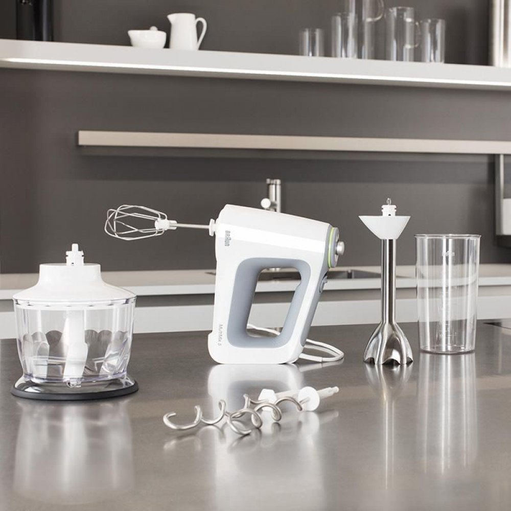 Braun MultiMix 5 HM 5137. Typ: Ruční mixér, Barva výrobku: šedá, bílá, Funkce mixéru: Funkce: šlehání, hnětení, mixování. Materiál nožů: Nerezová ocel. Příkon: 750 WNový mixér MultiMix 5 nabízí větší výkon a přesnost než dříve. Technologie SmartMix umožňuje optimální rozložení hmotnosti díky vertikálnímu nastavení motoru. Se 750W motorem nestojí nic v cestě kreativitě při pečení. Funkce VarioContr...