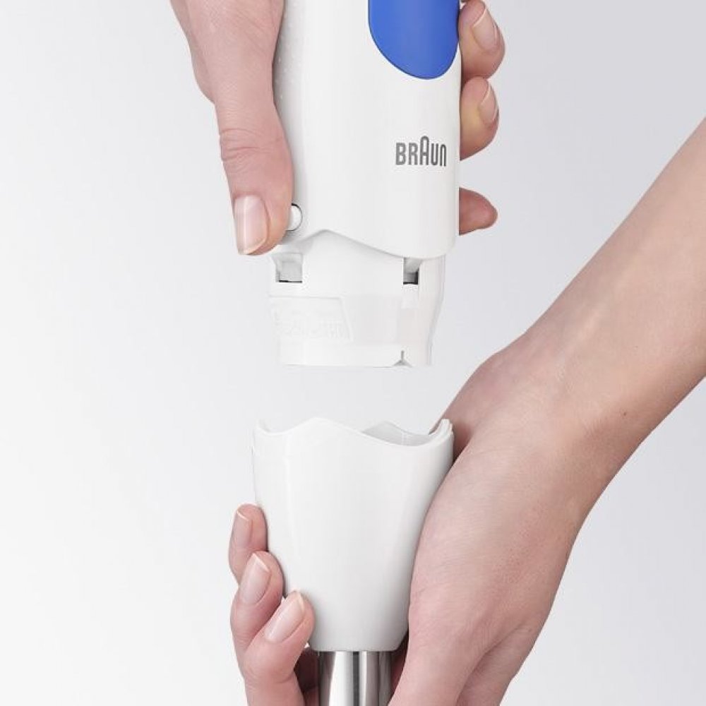 Nová řada tyčových mixérů MultiQuick 3 od firmy Braun je ideálním pomocníkem v kuchyni. Je vybavena dodatečným ostřím, které rozšiřuje oblast řezání a efektivně rozmělňuje ingredience, což zaručuje precizní a rychlé výsledky míchání. Bez námahy zvládne i velké kusy potravin. PowerBell Plus Technology: Zvýšená aktivní oblast míchání. Rychlé rozdrcení ingrediencí během několika sekund.SplashControl Technology: Technologie zabraňující stříkání, udržuje kuchyň čistou a uklizenou.EasyClick systém: Snadná a rychlá výměna příslušenství pomocí dvou tlačítek a jediného pohybu, což umožňuje vyšší flexibilitu při vaření.Výkonný motor 700 W: Rychlá a snadná příprava pokrmů.500 ml sekací nádoba: Rychlé sekání masa, sýra, ořechů, bylinek či mrkve během vteřin.Šlehací nástavec: Snadné šlehání, míchání a hnětení vajec, smetany nebo přísad na dezerty s nastavitelnou rychlostí.600 ml odměrná nádoba z BPA-free materiálu: Odměrná nádoba bez BPA s různými označeními míry (ml a fl. oz.).Dvojí rychlost: Dvě nastavitelné rychlosti pro kontrolu konzistence během míchání.Kompatibilní s příslušenstvím s vlnitým zakončením: Kompatibilní se všemi příslušenstvími od Brauna s půlkruhovým (vlnitým) zakončením.