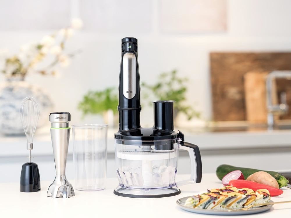 Braun Multiquick 7 MQ 7087 X: Tyčový mixér, 1000 WVýkonný mixér pro všechny kulinářské potřeby Regulace otáček a výkonný motor Braun Multiquick 7 MQ 7087 X je vybaven výkonným 1000W motorem a regulací otáček pro maximální efektivitu. Bohaté příslušenství pro různé úkoly Tento mixér je dodáván s 600ml mixovací nádobou, 350ml nástavcem na sekání a nástavcem pro přípravu pyré a kaší. Food procesor pro sekání, hnětení, krájení a drcení Food procesor je součástí balení a umožňuje sekání, hnětení, krájení a drcení. ACTIVEBlade technologie ACTIVEBlade technologie umožňuje pohyblivou mixovací nohu, která zvládne i ty nejtvrdší suroviny s menším úsilím. Easy SmartSpeed technologie Easy SmartSpeed technologie umožňuje intuitivní a plynulé nastavení rychlosti mixéru. EasyClick PLUS systém EasyClick PLUS systém umožňuje rychlou výměnu jednotlivých dílů bohatého příslušenství. Technologie SPLASHControl SPLASHControl technologie chrání vaši kuchyni před rozstřikem. Co najdete v krabici?