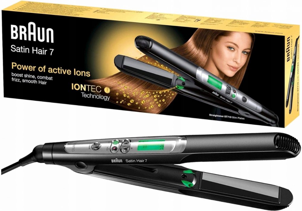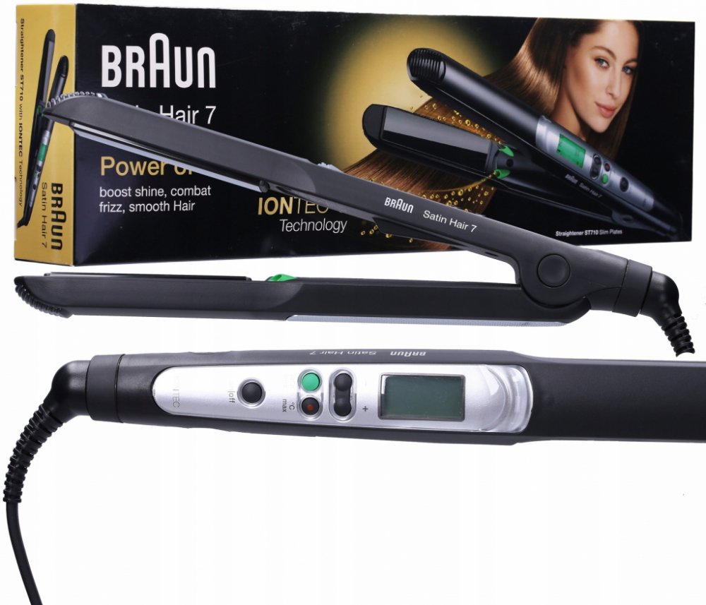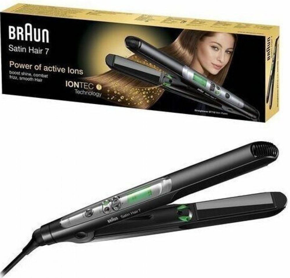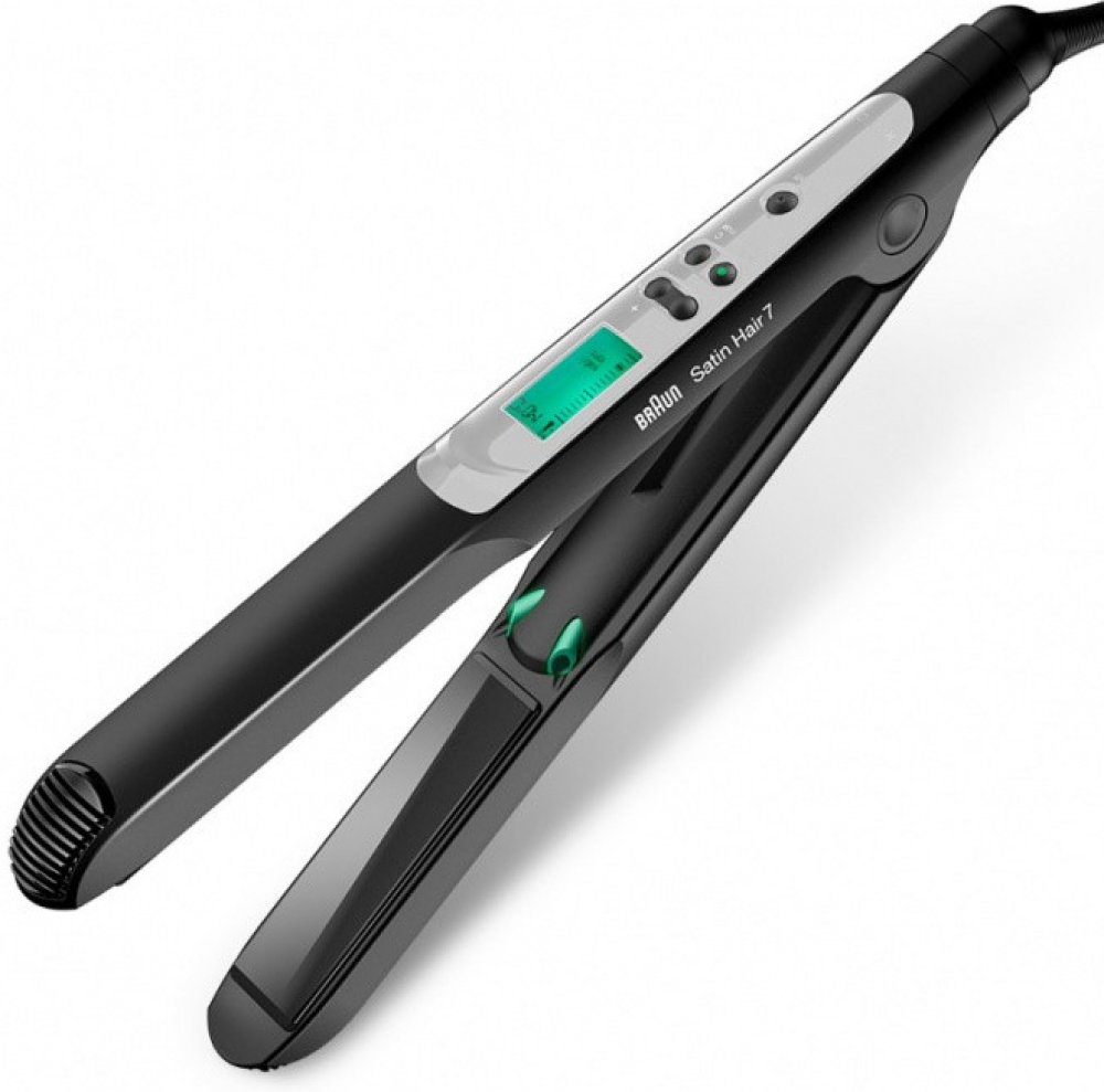 Žehlička na vlasy Braun ES 2 Satinliner, NanoGlide keramické desky – 3x hladší než běžná keramika, mikroprocesor s extra velkým LCD displejem a pamětí, ionická funkce, teplotní rozsah: 130-200°C/ nastavení po 5°C, autmatické vypínání po 30 minutách, novou žehličku na vlasy Satinliner si můžete prohlédnout na uloženém videoklipu Satinliner ES2 – LCD displej