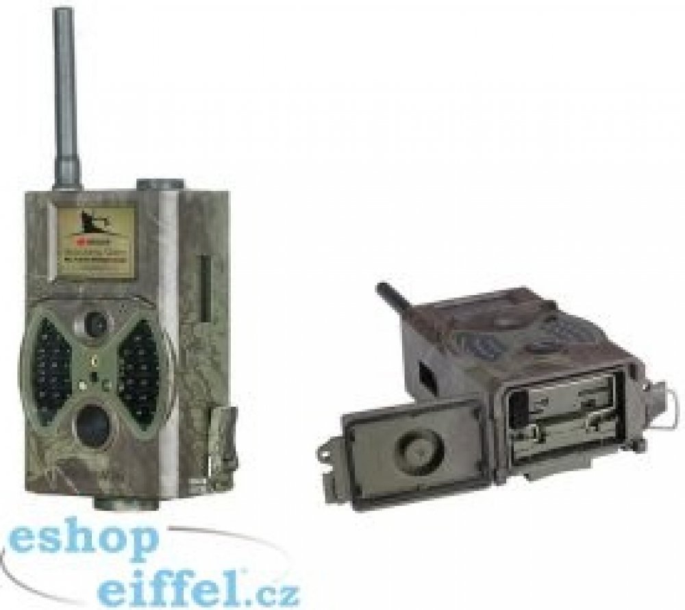 Digitální sledovací foto/videokamera s detekcí pohybu nebo nastavením TimeLapse (časosběrný režim), záznam 1-9 foto nebo video 1080P, 720P, VGA. 5Mpx čip pro barevné denní záběry a černobílé v noci se skutečně zcela neviditelným IR světlem (36 Black IR LED až do 20 metrů). Outdoor sledovací přístroj s vnějším 2" LCD a dálkovým ovládáním, voděodolný dle IP54, záznam datumu a času, maskované provede...