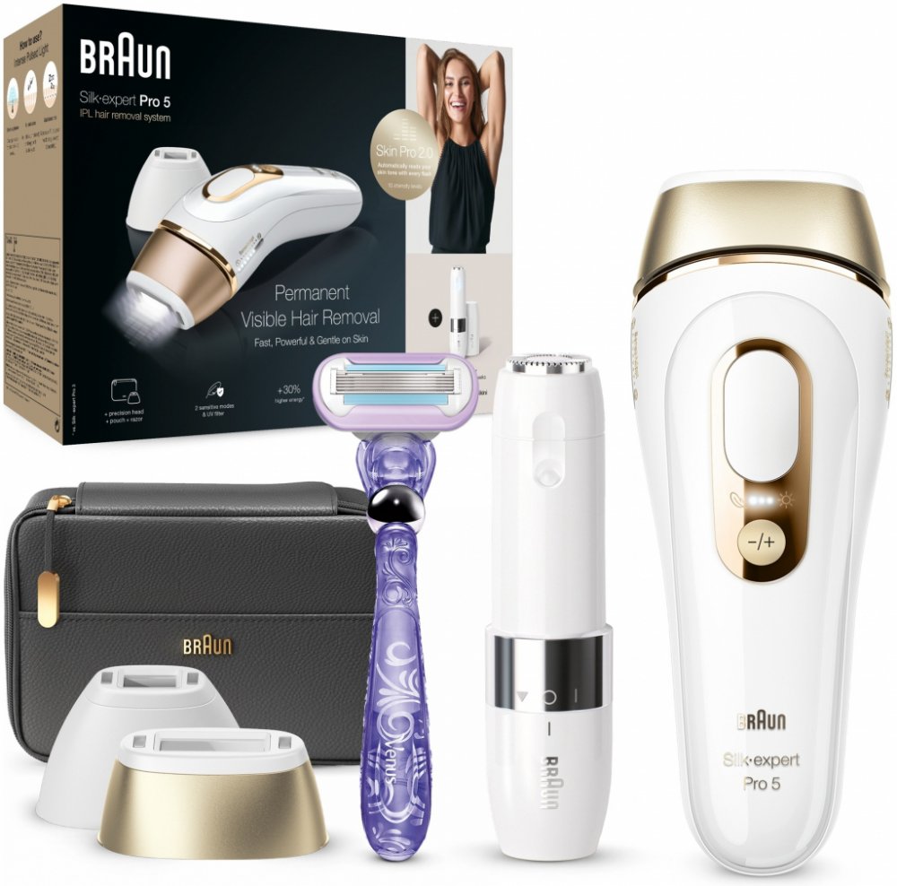 Braun Silk-expert Pro PL5149 IPL epilátor Až 6 měsíců hladké pokožky jako ze salonu z pohodlí domova. Viditelné snížení růstu chloupků za pouhé 4 týdny. Díky profesionálnímu snímači Skin Pro 2.0 (SensoAdapt™), který automaticky a nepřetržitě přizpůsobuje výkon odstínu vaší pokožky, pracuje přístroj optimálně v každé části těla. Nejrychlejší IPL od Brauna, který zanechává méně neošetřených míst. Až...