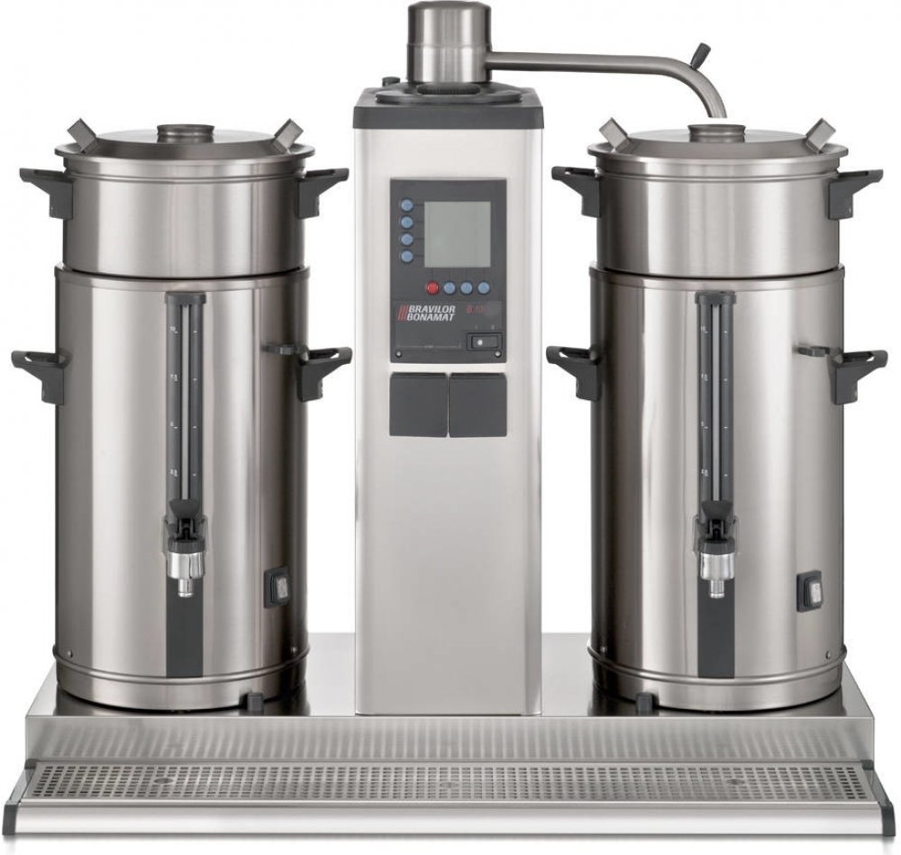 *Model B10 je překapávač kávy od holandské firmy Bravilor Bonamat, s napětím 400 V*. Rozměry zařízení 955x512x840 mm, 1 průtoková jednotka, 2 termosy (objem 10 litrů každý) pro přípravu většího množství kávy přímo do termosů. Je vybaven LCD displejem, počítadlem denního i celkového vydaného množství, signalizací „coffee is ready“ a systémem odvápnění. Výkon zařízení je až 480 šálků za hodinu. Vyhř...
