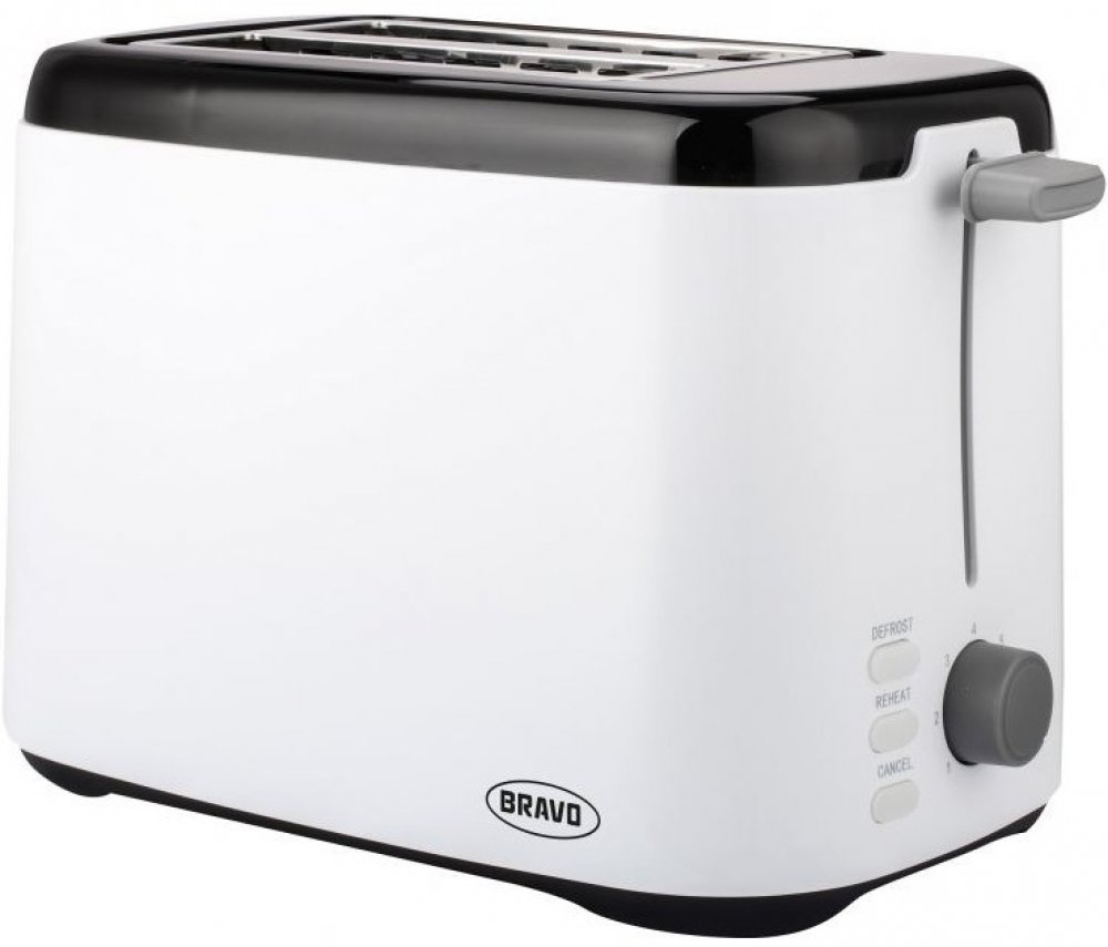 Plastový topinkovač pro přípravu 2 kusů topinek. Je vybaven funkcí ohřevu, rozmrazování a STOP tlačítka.