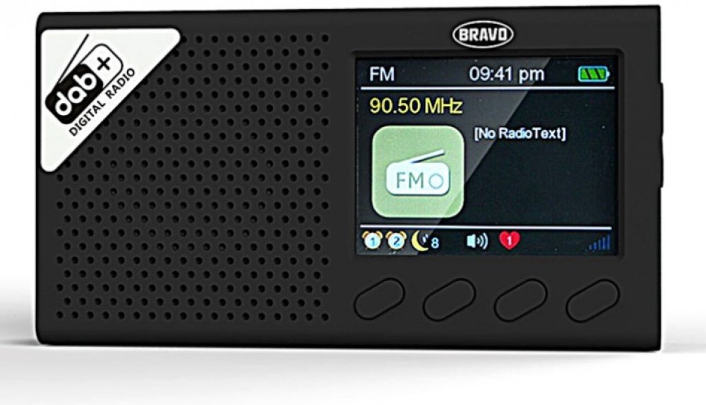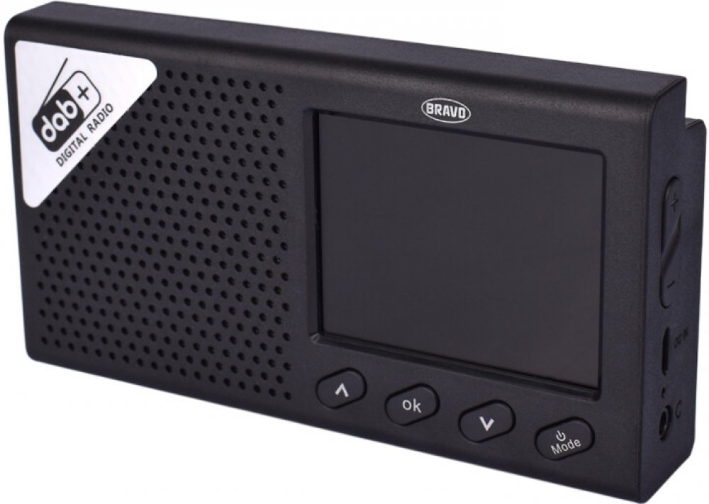 Šikovné a kompaktní digitální DAB rádio Bravo B-4905. Vydrží až 8 hodin na jedno nabití. Disponuje USB a konektorem pro sluchátka.