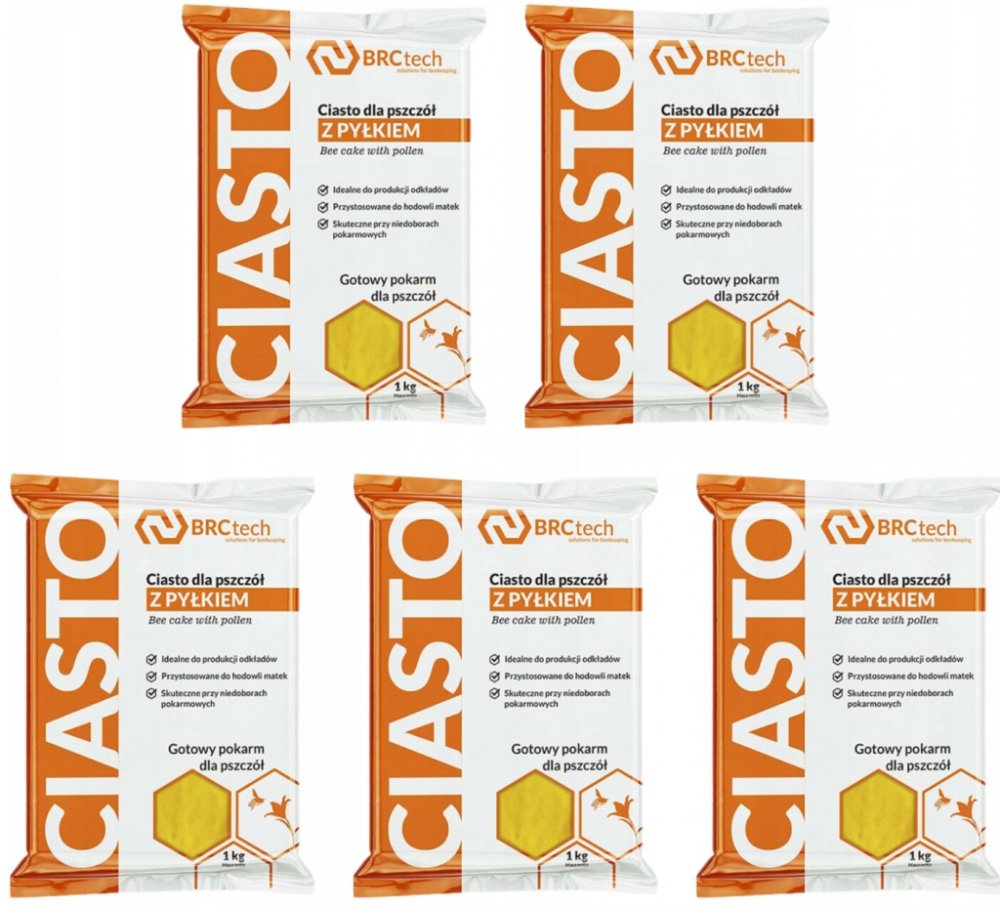 ❶ 5 kusů včelího těsta BRCtech s pylem po 1 kg – celkem 5 kg energetické a proteinové potravy.