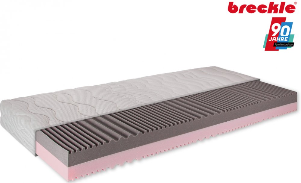 Breckle® 7zónová oboustranná matrace ze studené pěny Duo Plus Oboustranná matrace ze studené pěny se dvěma stranami s různou tvrdostí nabízí optimální přizpůsobení tvaru a hmotnosti těla Individuálně zvolená tvrdost pro odpovídající komfort při spánku Zvlněná povrchová struktura zajišťuje dobrou výměnu tepla a odvod vlhkosti Vhodná pro každou polohu při spánku Nabízí suché klima na spaní díky prod...