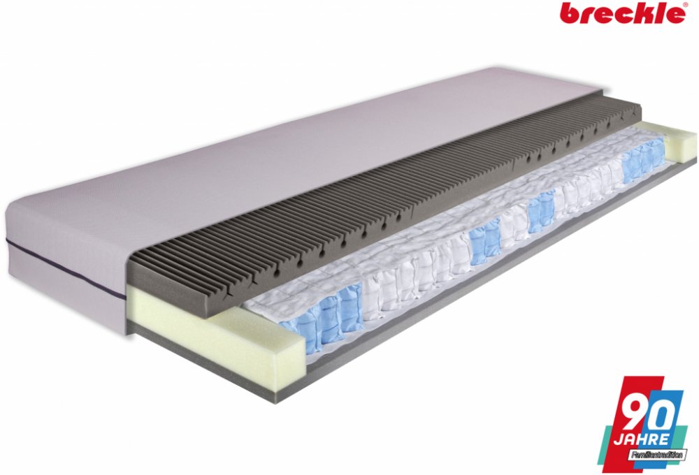 Breckle 7zónová taštičková matrace Pro Somna TFK Objevte s Pro Somna novou dimenzi komfortu během spánku. Tato vysoce kvalitní matrace byla speciálně vyvinuta, aby tělo jemně uklidnila. Ergonomický tvar se ideálně přizpůsobí tělesným konturám a podporuje přirozenou polohu při ležení – ideální pro všechny spánkové polohy. Bodově elastické; 7zónové taštičkové jádro nabízí stabilní oporu. Jednotlivě do vliesu zabalené pružiny se mohou pohybovat nezávisle na sobě, a díky tomu se dokonale přizpůsobují poloze těla při ležení. Speciálně tvarovaná studená pěna s výřezy v ramenní oblasti a lamelovaným povrchem umožňuje ergonomické přizpůsobení tělu a minimalizuje tlak při poloze na boku. Dobré zapadnutí v oblasti ramen, pevná středová zóna pro těžší pánev a tím optimální uložení těla. Vhodná pro všechny typy postav: od malých po vysoké; od lehkých po těžké – v poloze na zádech i na boku. Stiftung Warentest doporučuje tuto matraci i pro děti, které již vyrostly z dětské postýlky. Hodnocení testu: Dobře – od Stiftung Warentest. Pro Somna TFK byla při vydání 09/2024 hodnocena známkou „Dobře“ 2,0. Testována byla matrace ve velikosti 90×200 cm a tvrdosti H3 – střední. Síťovaný potah Otevřená tkanina s množstvím drobných otvorů zajišťuje vynikající cirkulaci vzduchu. Poskytuje chladné a příjemné klima pro spánek – účinně zabraňuje přehřívání a hromadění vlhkosti. Díky své struktuře umožňuje síťovina rychlé odpařování potu a vlhkosti, což přispívá k pocitu svěžesti a čistoty. Potah se ě přizpůsobuje jádru matrace a bodově kopíruje tělesné kontury. Je snadno snímatelný díky čtyřstrannému zipu a pratelný při teplotě do 60 °C. Čtyři praktická madla usnadňují manipulaci s matrací. Díky jednostrannému provedení a speciálně navržené lehací ploše není nutné matraci otáčet. Značková kvalita Matrace Pro Somna TFK je značkovou matrací německého výrobce Breckle a představuje spolehlivou kvalitu Made in Germany. Všechny použité materiály jsou certifikovány dle Oeko-Tex Standard 100 třída 1 – Baby. Pěna používaná pro kvalitní jádro pochází z vlastní výroby; je testována na škodlivé látky nezávislou organizací LGA a vyrábí se s neutrální bilancí CO₂ Charakteristika produktu tabletd Typ produktu: Taštičková pružinová matrace Stupeň tvrdosti: volitelný mezi H2měkká nebo H3střední Doporučení stupně tvrdosti: H2/měkká: 30–100 kg; H3/střední: 60–100150 kg Doporučená poloha spánku: - Počet zón ležení: 7 Typ jádra: Taštičková pružina Konstrukce jádra: 7zónové taštičkové jádro 12 cm s profilovanou 6 cm polstrováním ze studené pěny na lehací ploše Typ potahu jádra: Vlies Výška potahu jádra: cca 20cm Objemová hmotnost: cca 35 kg/m³ Velikost: cca 80 x 200 cm D x Š; 90 x 200 cm D x Š; 100 x 200 cm D x Š; 120 x 200 cm D x Š; 140 x 200 cm Hmotnost: cca 80 x 200 cm: 17,11 kg; 90 x 200 cm: 19,10 kg; 100 x 200 cm: 21,19 kg; 120 x 200 cm: 25,67 kg; 140 x 200 cm: 29,64 kg Celková výška: cca 22 cm Oboustranná matrace: - Úchyty na otáčení: ano Materiál potahu: polyester Snímatelný potah: ano Typ zipu: 4stranný Pokyny k údržbě: Potah pratelný do 60°C Poznámka pro alergiky: - Poznámka: Doporučujeme rošt s minimálně 26 lamelami a maximální vzdáleností lamel od sebe tři až čtyři centimetry. Poznámka k dodání: Matrace se zasílá vakuově srolovaná v fólii a v praktické krabici. Po vybalení se zcela rozloží přibližně za 24 hodin.