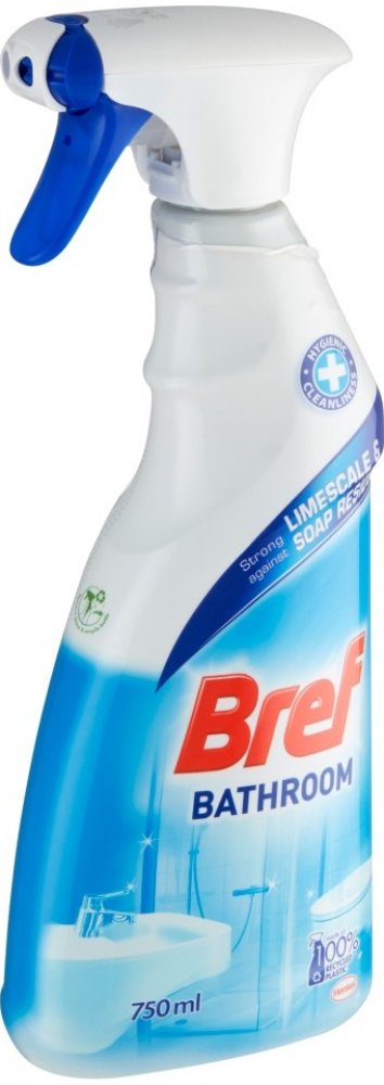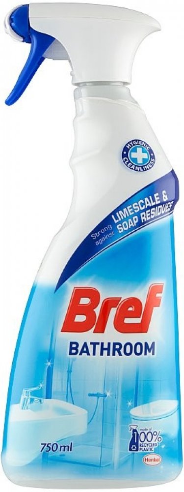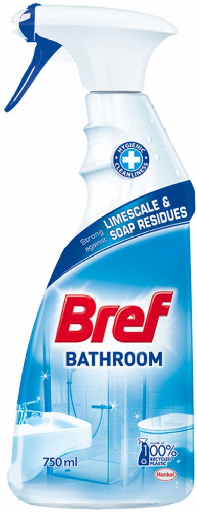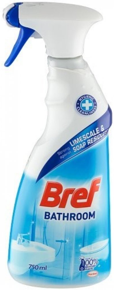 Usilujeteli o čistou a zářivě lesklou koupelnu každý den rozhodně vyzkoušejte čistič Bref Bathroom Tento čistící prostředek účinně odstraňuje vodní kámen skvrny od kapek a špínu a zajistí perfektní čistotu ve vaší vaně a sprše Aplikace prostředku je variabilní můžete ho použít jako čisticí pěnu nebo sprej Díky rozprašovaci je jeho nanesení velice hygienické Použítím Brefu získáte velice rychle svěží čistotu ve vaší koupelně