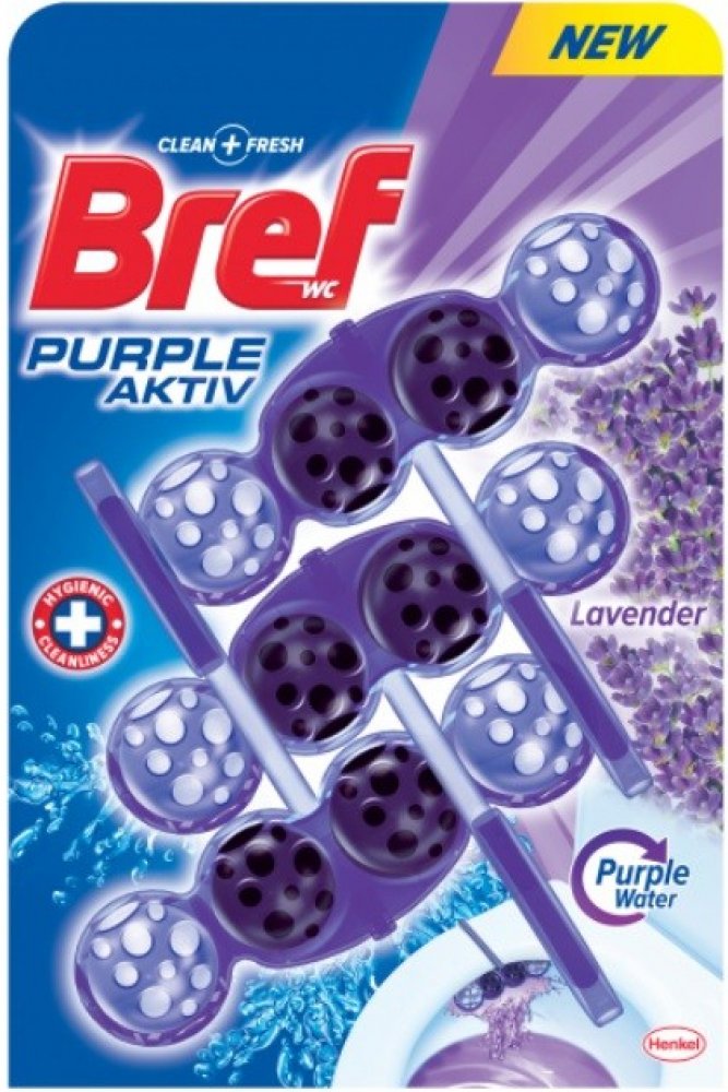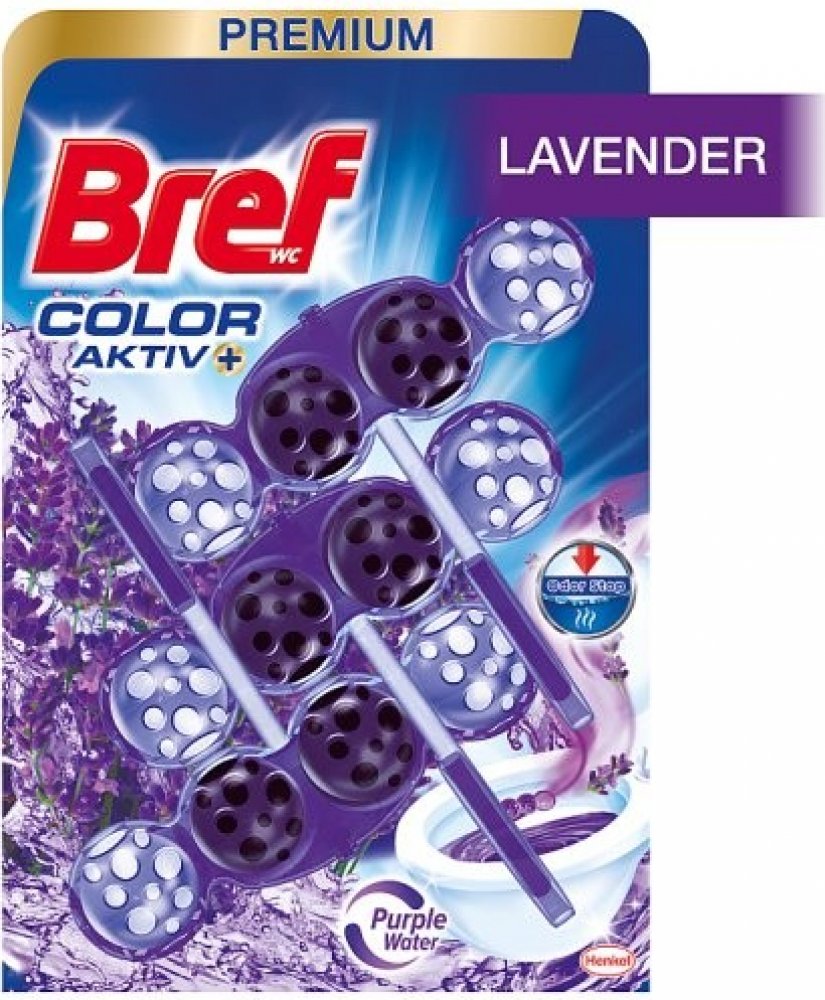 Bref Color Aktiv WC blok Lavender purple water 3 x 50 g – Oživte svou toaletu fialovou