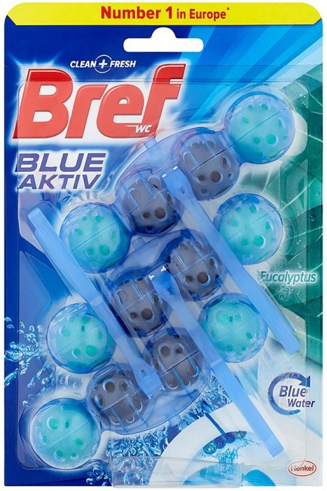 WC BREF Color Aktiv Eucalyptus 3 x 50 g kuličky, v podobě čtyř kuliček s atraktivním designem a 4 funkcemi, které jsou dokonalá hygienická čistota, čisticí pěna, ochrana před vodním kamenem a dlohotrvající svěží vůně, Bref splňuje všechna kritéria pro moderní WC blok, košíček je dostatečně dlouhý a pokrývá větší část WC mísy.