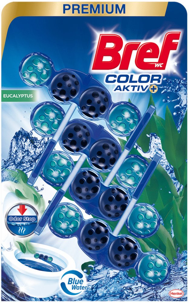 Bref Color Aktiv WC blok s vůní eukalyptu a technologií Odor Stop