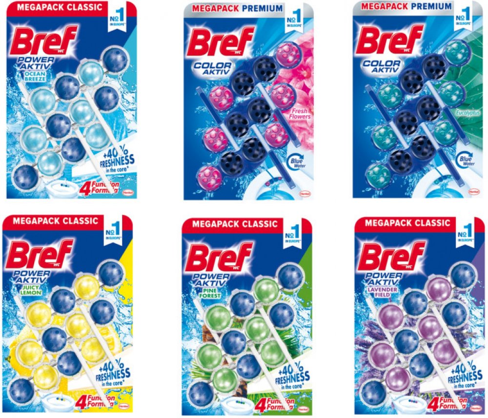 WC blok se čtyřmi aktivními kuličkami, které v sobě spojují přitažlivý design s vynikajícími vlastnostmi pro docílení hygienicky čisté a svěží toalety. Díky 4 funkcím, zahrnujícím čisticí pěnu, ochranu proti vodnímu kameni, ochranu proti nečistotám a extra svěžest, čistí BREF Power Aktiv Vaši toaletu při každém spláchnutí.