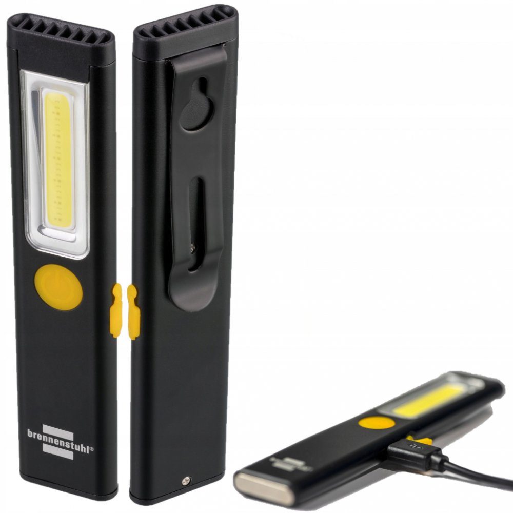 Brennenstuhl Svítilna PL 200 A / LED svítilna s COB LED (200lm, včetně nabíjecího USB kabelu, doba svícení až 12h, COB inspekční lampa s magnetem a klipem)