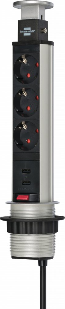 Zásuvková lišta s ochranným kontaktem a 3 ks s 2 USB konektory, 2 m dlouhý kabel H05VV-F 3G1,5, výkyvné stolní zásuvka·Stolní zásuvka USB s elegantním a odolnému hliníkovému pouzdru se zobrazením funkce·Inovativní pevnou montáž -stolní zásuvka pro flexibilní pracovišti rozmístění ve deska stolu vytahovací, zapadne decentně povrchu stolu·S dětskou pojistkou: plastové destičky uzavření kontakty zásu...