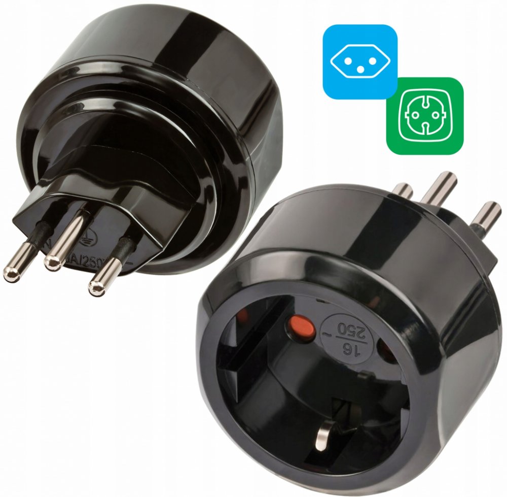Cestovní adaptér Schuko/CH od firmy Brennenstuhl je o izolovaná uzemňovací zásuvka se zemnícím vodičem. Cestovní adaptér Schuko/CH pro připojení elektrických přístrojů s uzemňovacím bezpečnostním zástrčkovým systémem pro země se systémem zástrček CH. Adaptér není měnič napětí ani kmitočtu. Zásuvka je zabezpečená, aby si děti neublížily. S částečně izolovanými kolíky.