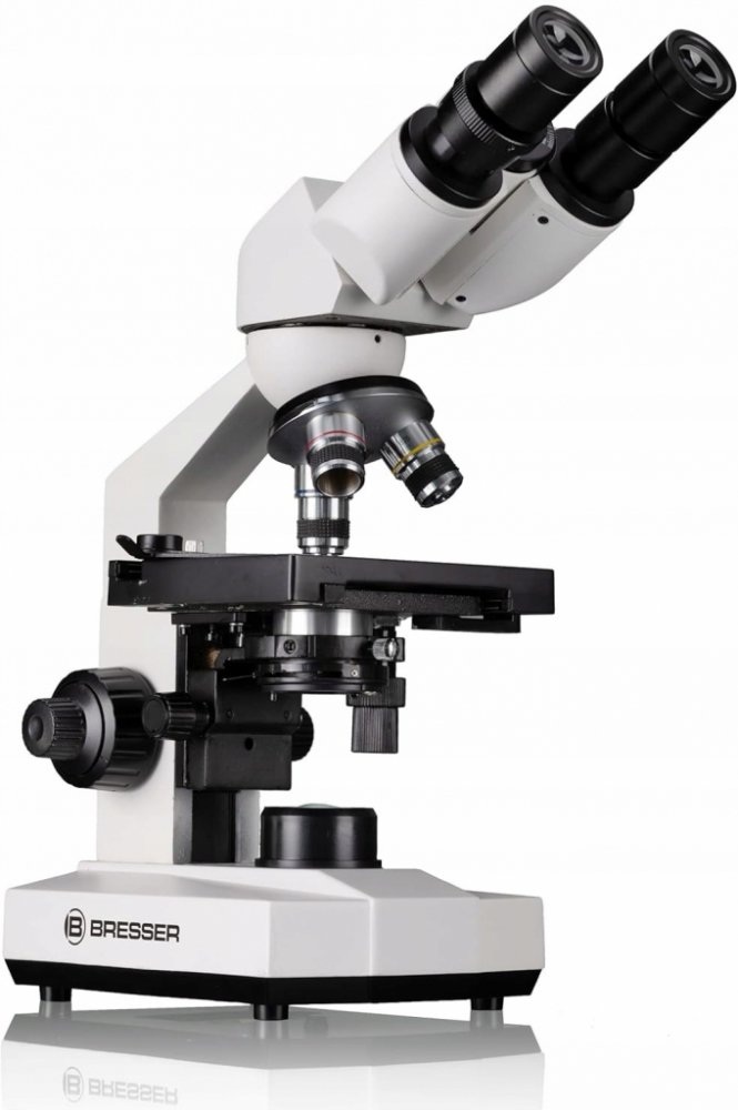 K pozorování v procházejícím světle. Zvětšení: 40–400x. Binokulární hlavice