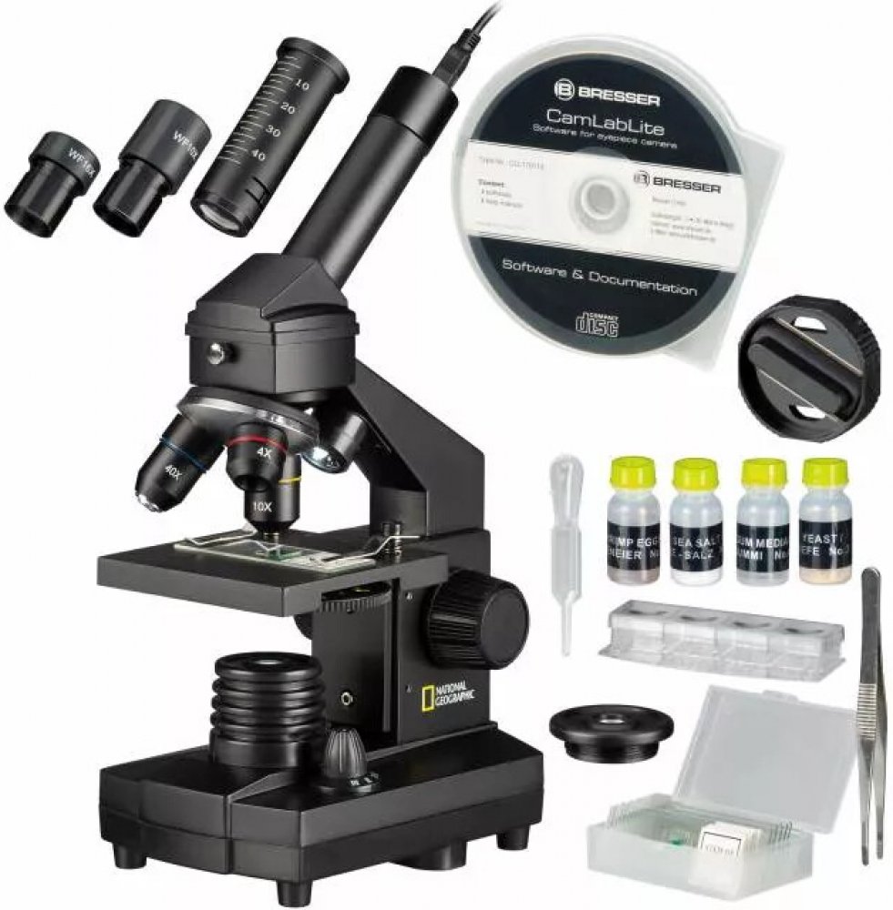Bresser National Geographic 40–1024x je digitální mikroskop určený ke studiu a k zájmovým činnostem a nabízející zvětšení v rozsahu 40 až 1024x. Jedná se o spolehlivý a funkční přístroj vhodný k pozorování transparentních, polotransparentních i neprůhledných objektů, který vám umožňuje provádět prezentace a ukládat výsledky výzkumu na počítači.