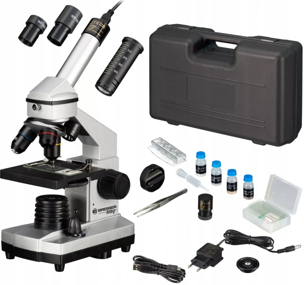 Důležitou součástí sady mikroskopu Bresser National Geographic 40–1024x je bohatá pokusná souprava včetně nástrojů pro práci s preparáty. Obsahuje hotové preparáty, líheň k pěstování žábronožek a vše potřebné pro přípravu vlastních preparátů k výzkumu. Obsahuje hotové preparáty, líheň k pěstování žábronožek a vše potřebné pro přípravu vlastních preparátů k výzkumu. Součástí dodávky je i obal proti prachu a kufřík určený k přepravě a uložení mikroskopu a příslušenství.