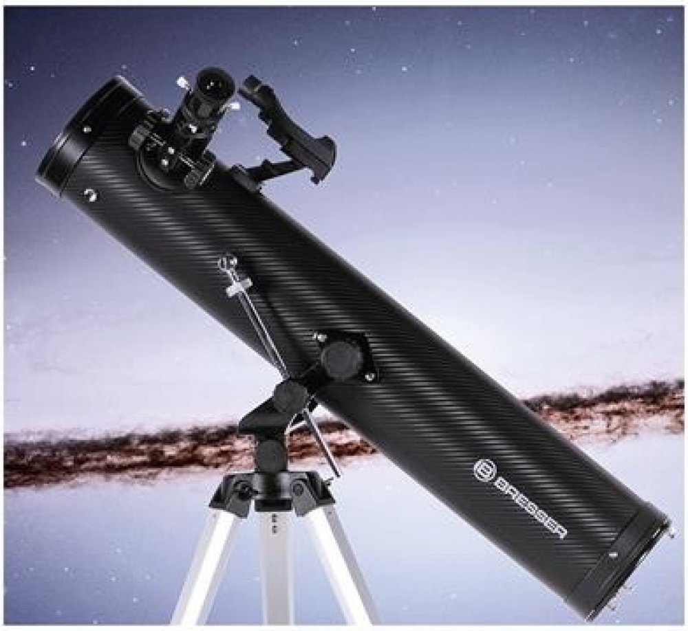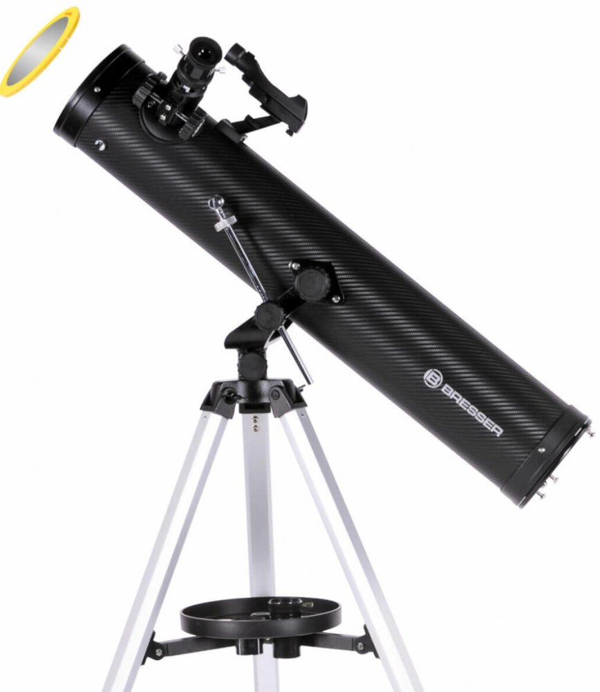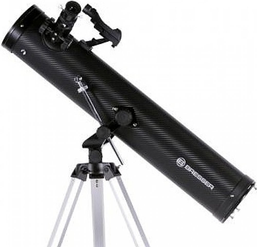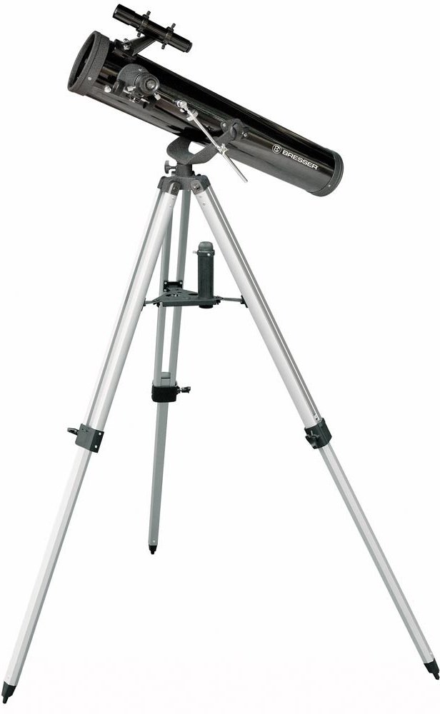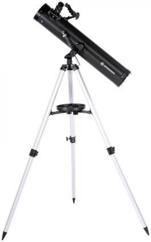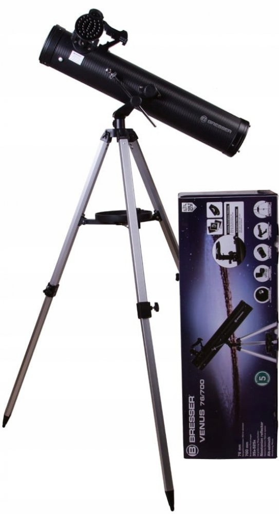 Bresser Venus 76/700 AZ je Newtonův zrcadlový dalekohled s kvalitní optikou, která vytváří ostrý a kontrastní obraz s minimem chromatické aberace (to znamená, že kolem jasných objektů neuvidíte žádné barevné „halo“ a zbloudilé světlo). Teleskop je instalován na jednoduché azimutální montáži, kterou dokáže snadno ovládat i dítě. Montáž a optický tubus jsou uloženy na lehkém nastavitelném stativu s odkládací plochou na příslušenství.