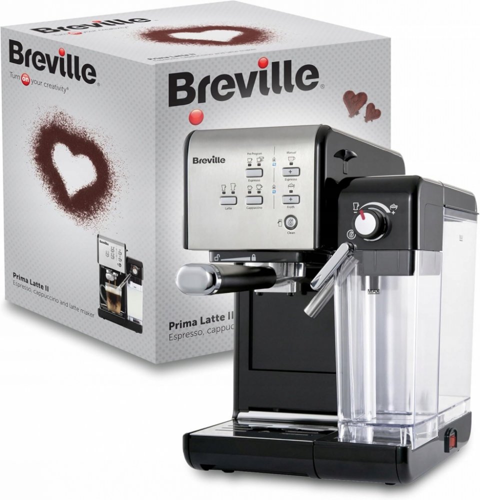 Pákové espresso s tlakem 19 barů a vyjímatelnou nádrží na vodu o objemu 1,5 litru. Breville Prima Latte II VCF108X s předehřívačem šálků připraví dva šálky kávy za pár okamžiků, stačí stiknout tlacítko. Ke kávovaru náleží odnímatelná nádoba na mléko.