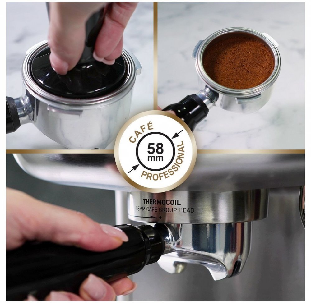 Kvalitní extrakci kávy podporuje i 58 mm široká hlava kávovaru, s kterou se zpravidla setkáte v profesionálních kavárnách. Široká hlava zaručí, že zrníčka umleté kávy jsou rovnoměrněji rozprostřena v držáku filtru, což napomáhá bohatosti chuti kávy.