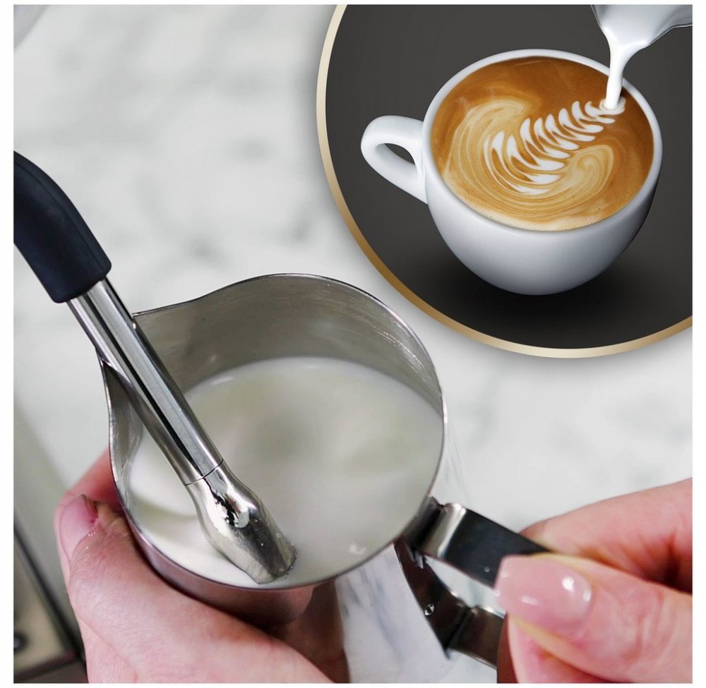 Pro milovníky mléčných kávových nápojů je k dispozici tryska poskytující suchou páru - ideální pro sametově nadýchanou mléčnou pěnu do vašeho latte, cappuccina nebo flat white.