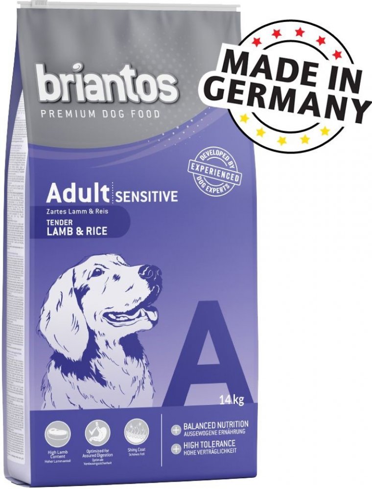 Briantos krmivo pro psy je odjakživa synonymem pro spolehlivost. Briantos vám poskytne správné krmivo pro každou potřebu. Naše bezobilninová receptura je pro potomky vlků dobře stravitelná a díky vysokému obsahu vlhkosti také velmi oblíbená u mnoha vybíravých psů. Vysoká kvalita našeho krmiva je zajištěna výrobou v Německu. Briantos suché krmivo v přehledu Kompletní krmivo pro dospělé psy všech pl...