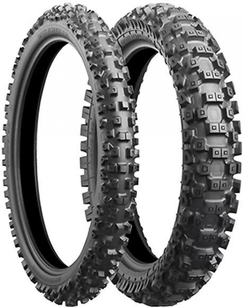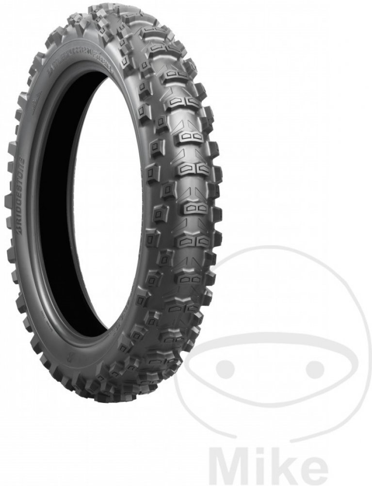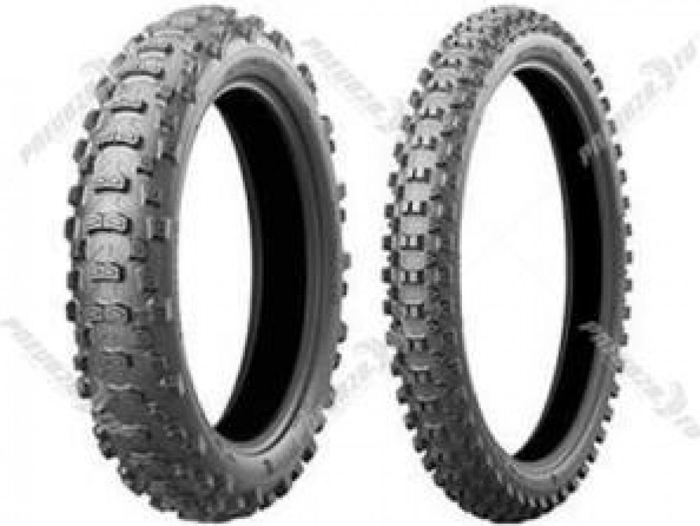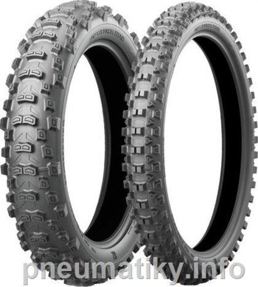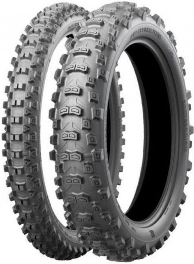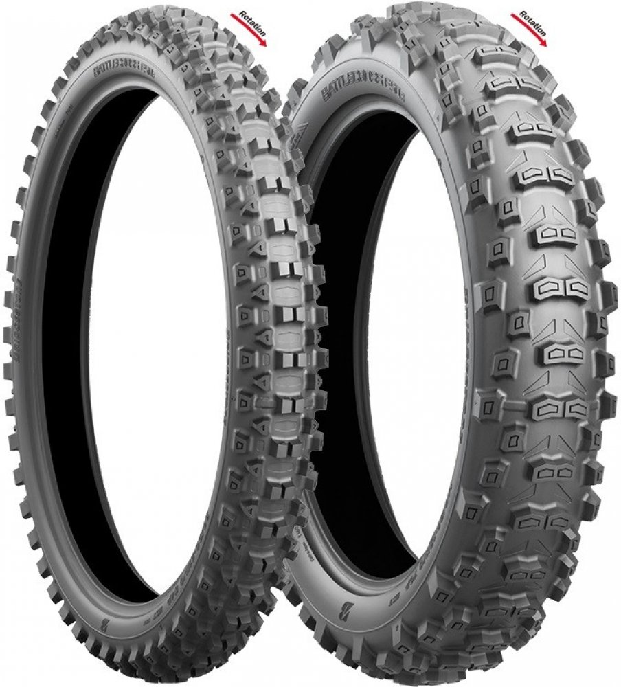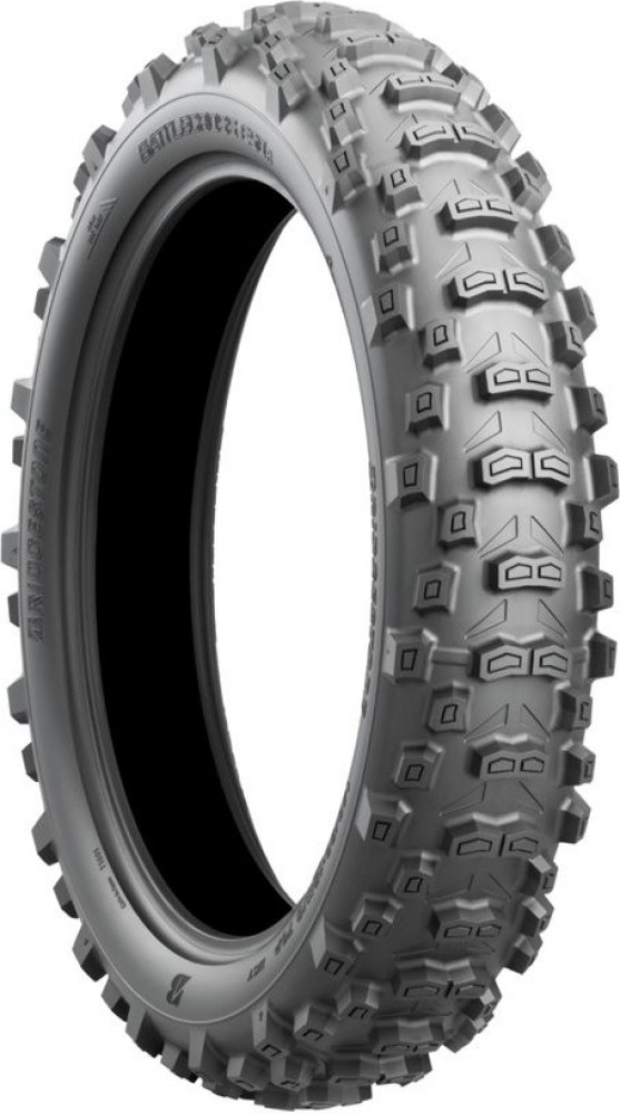 Battlecross E50 vyvinutá pro endurové soutěže. Homologován pro silniční použití a může být použit ve všech soutěžích Enduro. Zahrnuje technologii Battlecross Motocross, která je přenášena a optimalizována pro použití v reálném enduru. Vynikající trakční schopnosti od měkkého terénu až po mokrý tvrdý terén. Nově navržená boční stěna nejen zlepšila absorpční vlastnosti pneumatiky, ale také usnadnila montáž pneumatiky. Nebojte se měnit pneumatiky na trati! Battlecross E50 ukázal zlepšení ve všech oblastech výkonu a na všech typech povrchů oproti předchůdci.Pneumatika používá patentovanou technologii Bridgestone Castle Block, která zajišťuje efektivní adhezi dokonce i na kluzkém povrchu. Speciální hrana, umístěná u paty bloků dezénu, umožňuje pneumatice BATTLECROSS E50 dosahovat na měkkém povrchu mimořádné trakce. Bridgestone použil rovněž simulace 3D pro optimalizaci tvarů a umístění bloků dezénu. Díky tomu je u přední pneumatiky BATTLECROSS E50 zajištěna vyšší úroveň výkonů při průjezdu zatáčkou a u zadní pneumatiky BATTLECROSS E50 vyšší úroveň trakce.Nejdůležitější vlastnosti a charakteristiky:- Zvýšení výkonu na všech površích oproti předchůdcům.- Obrovský pokrok v přilnavosti při zatáčení a v přenosu tažné síly.- Snazší montáž.- 1 směs pro všechny podmínky.