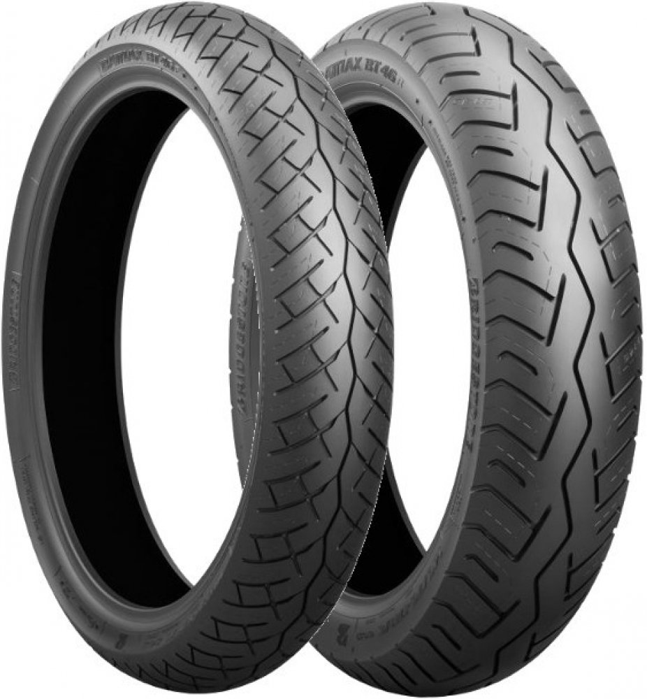 Bridgestone BT46 Odolná pneumatika z dílny Bridgestone Pro cestovní a starší motocykly. Výborná hodnocení ve srovnávacích testech diagonálních pneumatik. Poskytuje svému majiteli vysoký jízdní komfort a životnost. Battlax BT46 přichází jako náhrada za ikonický Battlax BT45. Jelikož byl představen již před 22 lety, byl Battlax BT45 opravdovou stálicí touring segmentu. Nyní Bridgestone doplnil konstrukci nejnovějšími technologiemi. Battlax BT46 těží ze tvaru dezénuobráceného V, to rozkládá síly působící na běhoun, a snižuje nerovnoměrné opotřebení a poskytuje jezdci neuvěřitelnou zpětnou vazbu pro precizní ovládání. Použití jednosměsového běhounu s aplikací vysoce výkonné silika směsi na zadní pneumatice poskytuje skvělou zpětnou vazbu, vnímání jízdy, jízdní vlastnosti na suchu a nezbytné zlepšení výkonu na mokru pro celkový vysoký výkon BT46. Přilnavost na mokru byla oproti BT45 zlepšena, bez dopadu na u předchůdce ceněnou ovladatelnost na suchu a odolnost opotřebení.