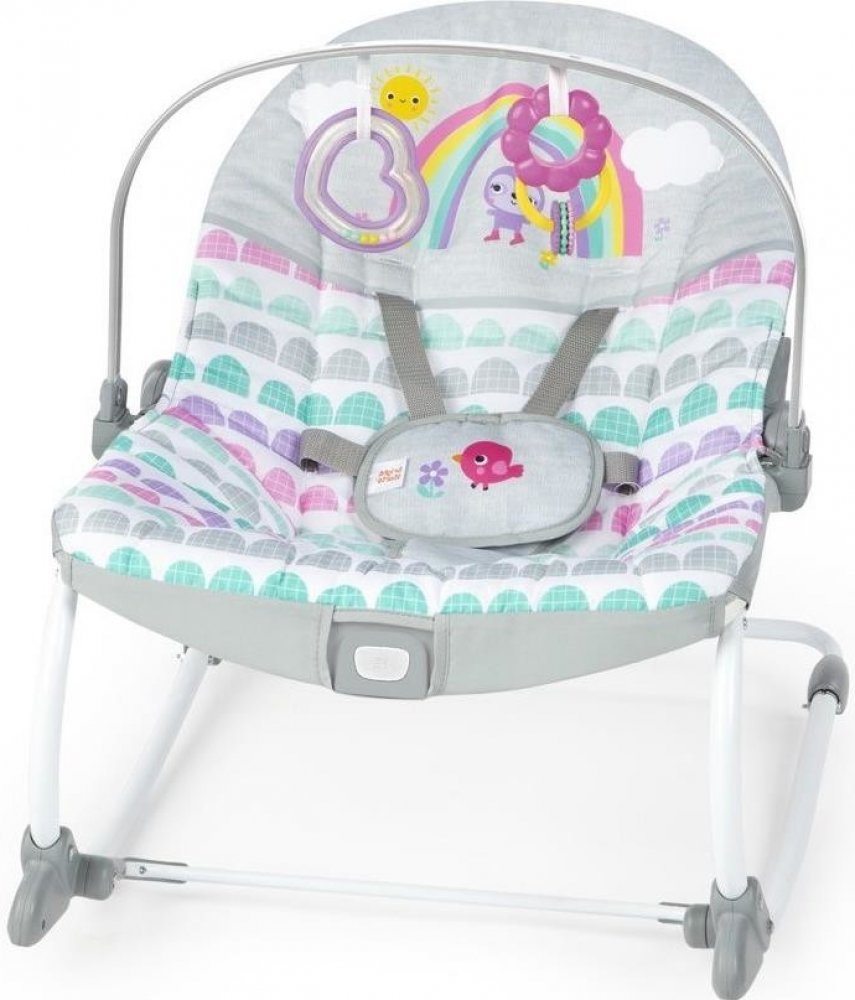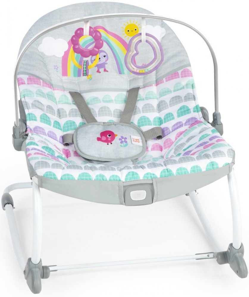 - Získejte roky používání s tímto multifunkčním houpátkem! Houpátko Bright Starts Rosy Rainbow pro kojence a batolata se mění z houpacího na stacionární sedátko a roste spolu s dítětem až do 18 kg. Přepínání z houpacího na stacionární sedátko se stabilizačním předním stojanem.