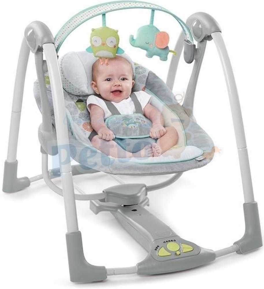 Houpátko BRIGHT STARTS s melodií Hoots&Hugs od narození do 9 kg Houpačka Hoots & Hugs™ umožňuje houpání v maximálním pohodlí kdekoliv a kdykoliv. V bodech : Hybridrive™ technologie zajistí, že baterie vydrží 3 krát déle TrueSpeed™ technologie s 5 rychlostmi houpání, které lze vhodně přizpůsobit Vašemu miminku 8 melodií a 3 přírodní zvuky odnímatelná opěrka hlavy odnímatelná hrazdička se 2 plyšovými hračkami vyžadují se 4D baterie, které nejsou součástí balení Funkce WhisperQuiet™ umožňuje tichý chod houpačky časovač houpání se 3 možnostmi nastavení: 30, 45 a 60 minut pohodlná houpačka s opěrkou hlavy jednoduché a úsporné skládání šetří prostor díky designu Slimfold™ 5-bodový bezpečnostní pás, protiskluzové nožičky podložka na sezení a opěrka hlavy se snadno čistí rozměry produktu: 58.42 cm x 66.04 cm x 56.52 cm