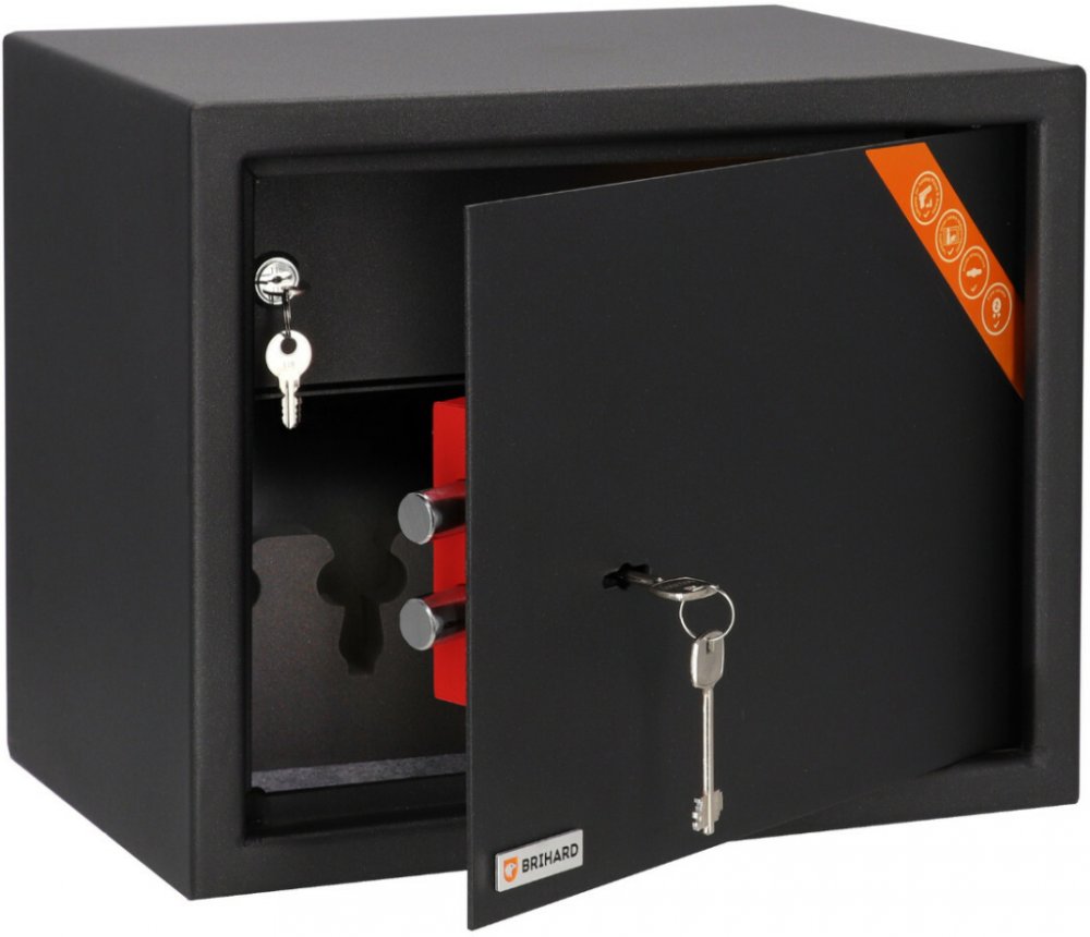 Hmotnost: 18.0000Záruční doba: 2 rokyVyrobce: BrihardTyp zámku: Trezorový zámek na klíč, 2 klíče. Ochrana proti vytažení klíče při odemčení trezoru.Stěna: Konstrukce trezoru - z oceli o tloušťce 3 mm.Dveře: Trezor je vybaven masivními dvířky ze 3 mm oceli.Západky: Šrouby se zablokují v jednom směru. Vyrobeno z pevné oceli.Kotvení: Pro zajištění základního zabezpečení trezoru MUSÍ BÝT TREZOR PŘIPOJ...