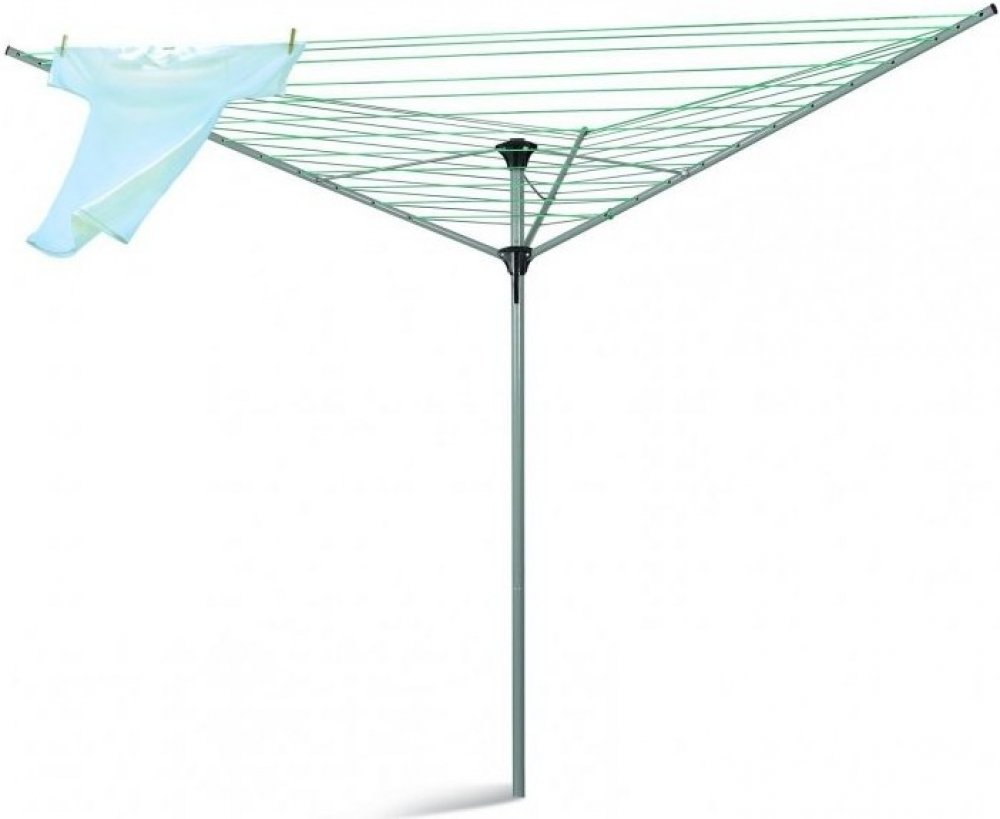Venkovní tříramenný sušák s velmi pevnou ocelovou konstrukcí. Kapacita cca 3 pračky prádla. Součástí výrobku je zemní objímka pro pevné ukotvení.