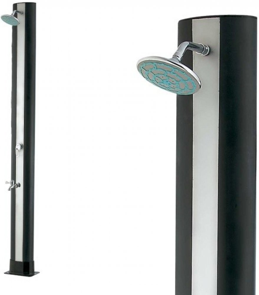 Jednoduchý, elegantní vzhled tohoto výrobku umožní velmi dobře začlenit solární sprchu do Vašeho exteriéru. Tělo sprchy je oválného tvaru z ABS plastu, antracitové barevné provedení v kombinaci s elegantním předním panelem stříbrné barvy, velká sprchová hlavice „fantasy rain“, kohoutek pro opláchnutí nohou, sprchová hlava, ovládání a kohoutek v chromovém provedení. Objem vody je 35l a výška sprchy 215 cm. Obsahuje boční ventil pro napojení hadice a také kovovou kotvící patku. Celková váha 11 kg.