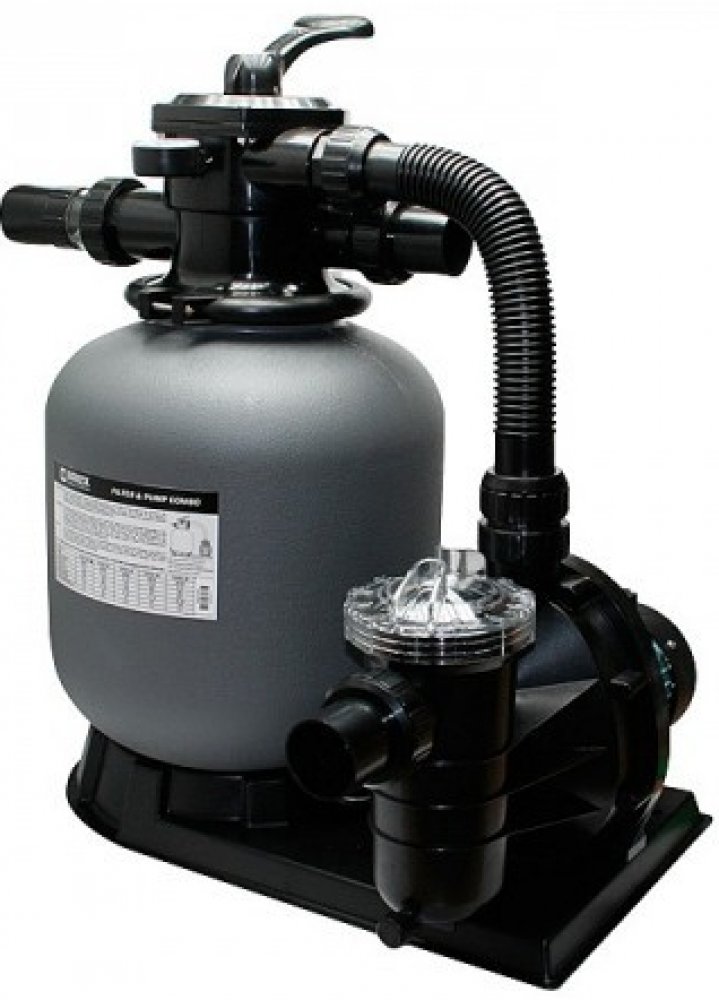 Písková filtrace Brilix FSP 450 je opatřená 6-ti cestným top-ventilem s manometrem, šroubením na připojení lepením ø50mm (PUMP, RETURN, WASTE). Bazénové čerpadlo s vlasovým filtrem o výkonu 8m3/h, které je s filtrační nádobou propojeno flexi hadicí.