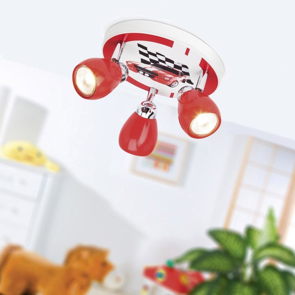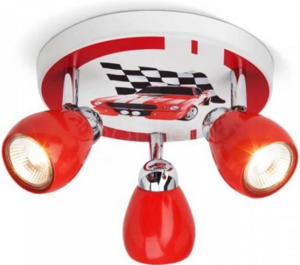 Stropní přisazené svítidlo v kvalitním celokovovém provedení je vhodné pro osvětlení moderního dětského pokoje. Originální motiv se závodním autem se stane nepřehlédnutelným doplňkěm v místnosti a potěší nejen chlapeckou duši, ale i tatínky. Jednoduchý design v nadčasových zaoblených křivkách a originální zpracování kombinující detaily z lesklého chromu a vícebarevný dekor přímo předurčují svítidlo RACING pro chlapecký pokojíček. Dominantními barvami na svítidle jsou červená, bílá a černá.