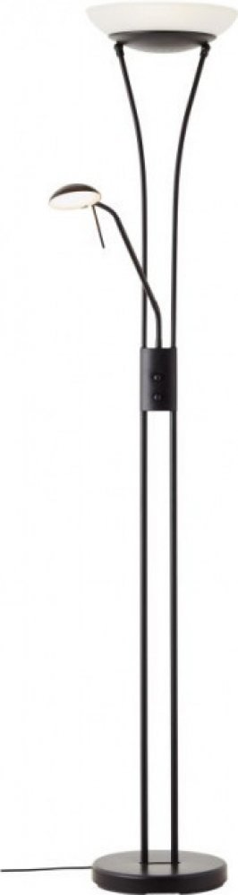 Stmívatelné stojanové svítidlo Brilliant, 1 x LED 18W Up-Light, 1 x LED 4,5W čtecí rameno, černé, bílé sklo, 2x reostat. Stojanová lampa FINN v nadčasovém a velmi oblíbeném provedení se dvěmi stmívači potěší milovníky klasického designu i moderních technologií.Horní světelný Up-Light je osazen výkonným LED zdrojem s příkonem pouhých 18W a světelnou účinností 2500lumen, který poskytne komfortní osvětlení v interiéru.Up-Light je navíc vybaven funkcí stmívání díky integrovanému reostatu, který umožňuje plynulou regulaci svítidla. Světelný tok lampy tak můžete regulovat dle aktuální potřeby či nálady. Čtecí rameno je také osazeno výkonným LED zdrojem s příkonem 4,5W a světelnou účinností 400 lumen, čtecí rameno je je stejně tak vybaveno reostatem umožňujícím plynulé stmívání. Rameno lampy je flexibilní díky kovovému "husímu krku" můžete rameno nastavit do polohy, která Vám nejvíce vyhovuje. Svítidla typu Up-Light vytvářejí odrazové, tedy nepřímé a velmi příjemné osvětlení v místnosti.Své uplatnění lampa FINN nalezne prakticky kdekoliv v interiéu, v obývacím pokoji, ložnici, chodbě a foyer. Díky svému nadčasovému designu je tato lampa vhodná pro osvětlení moderního i klasického interiéru, doporučit ji můžeme i pro osvětlení kancelářských, obchodních a jiných reprezentativních prostor.