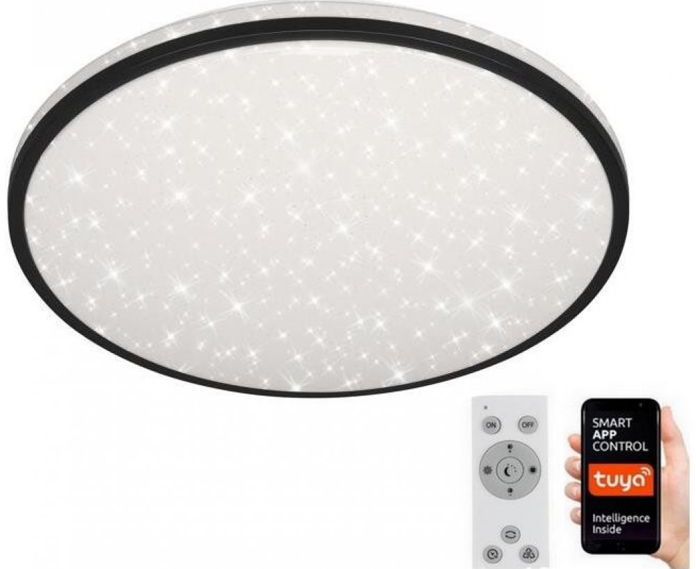 Stropní svítidlo Ivy Sky S LED zaujme nadčasovým designem, praktickými funkcemi a dekorativním efektem hvězdné oblohy. Svítidlo lze ovládat pomocí přiloženého dálkového ovladače, hlasovým příkazem nebo prostřednictvím bezplatné aplikace tuya. Díky tomu lze měnit teplotu barev od teplé bílé po denní bílou a regulovat jas. Kromě toho je svítidlo vybaveno časovačem, nočním světlem a paměťovou funkcí.- včetně dálkového ovládání- ovládání prostřednictvím aplikace tuya pro iOS a Android- hlasové ovládání přes Amazon Echo a Google Home- stmívatelné- funkce CCT (3 000 - 6 500 K)- integrovaný časovač, noční světlo a paměťová funkce