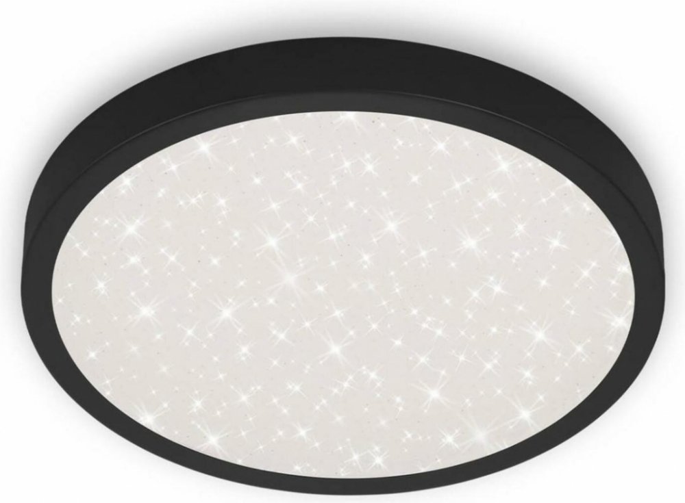 BRILONER LED stropní svítidlo hvězdné nebe, Ø 38 cm, 24 W, 3000 lm, černá – BRILO 3071-015 Příkon: 24 W Světelný tok: 3000 lm Barevná teplota: neutrální bílá (4000 K) Efekt hvězdné oblohy Rozměry: průměr 38 cm, výška 5 cm Barva: černá Stupeň krytí: IP20 (vhodné pouze pro vnitřní použití)Moderní LED stropní svítidlo s efektem hvězdné oblohyDodejte svému interiéru jedinečný nádech díky LED stropnímu svítidlu BRILONER s efektem hvězdného nebe. Jemné světelné body vytvářejí iluzi noční oblohy a promění každý prostor v útulné a inspirativní místo k relaxaci i práci.Univerzální použití ve všech obytných místnostechDíky svému originálnímu designu a příjemnému neutrálnímu bílému světlu (4000 K) se svítidlo skvěle hodí do obývacích pokojů, ložnic, dětských pokojů i pracoven. Snadno zapadne do moderních i klasických interiérů a podtrhne jejich atmosféru.Vysoký výkon a úspora energieSvítidlo poskytuje světelný tok 3000 lumenů při příkonu pouhých 24 wattů. Díky využití LED technologie získáte jasné a rovnoměrné osvětlení celé místnosti, a to s minimální spotřebou elektrické energie.Elegantní design s černým rámečkemKombinace efektního rozptylu světla a decentního černého rámečku dělá ze svítidla vizuálně poutavý prvek každého stropu. Efekt hvězdné oblohy vynikne zejména při večerním osvětlení.Dlouhá životnost a bezúdržbový provozDíky integrovanému LED modulu s životností až 25 000 hodin se nemusíte o výměnu světelných zdrojů starat dlouhá léta. Svítidlo je spolehlivé a navrženo pro každodenní provoz.Technické parametry a údržba Napájení: síťové 230 V Montáž: na strop Čištění: otírejte suchým nebo mírně navlhčeným hadříkemOchrana IP20 znamená, že svítidlo je určeno výhradně pro suché vnitřní prostory.Rozměry Průměr: 38 cm Výška: 5 cm