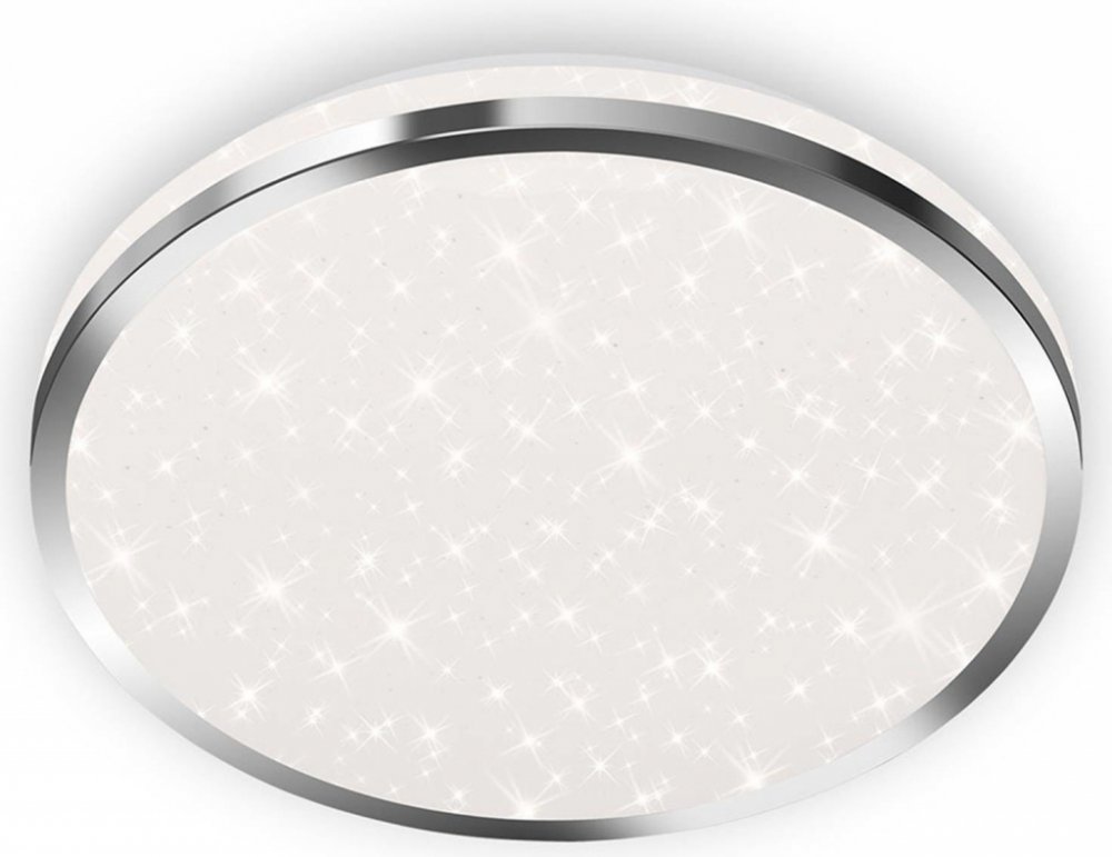 Kulaté LED stropní svítidlo 3403 s hvězdnou výzdobou a IP44 Toto kulaté LED stropní svítidlo se šumivou hvězdnou dekorací na plastovém krytu, který je ohraničen kovovým okrajem, je také vhodné pro použití v koupelně nebo v jiných oblastech, kde může díky krytí IP44 nastat vlhkost a stříkající voda. Když je osvětlení zapnuto, jiskří dekor jako obloha plná hvězd a lampa současně osvětluje místnost u...