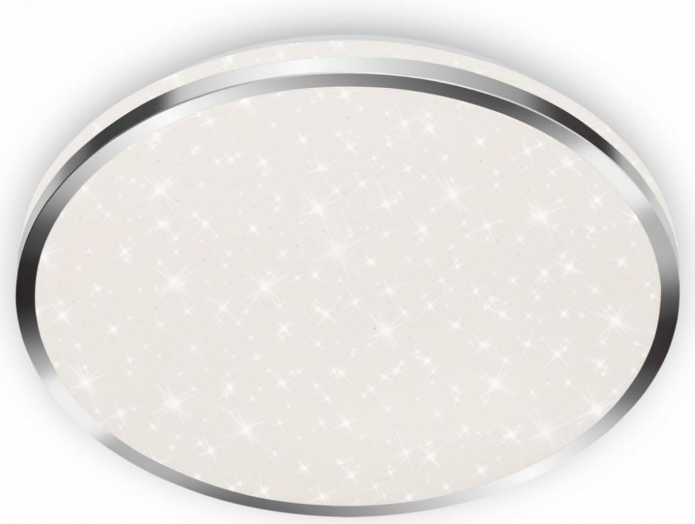Kulaté LED stropní svítidlo 3403 s hvezdnou výzdobou a IP44 Toto kulaté LED stropní svítidlo se šumivou hvezdnou dekorací na plastovém krytu, který je ohranicen kovovým okrajem, je také vhodné pro použití v koupelne nebo v jiných oblastech, kde muže díky krytí IP44 nastat vlhkost a stríkající voda. Když je osvetlení zapnuto, jiskrí dekor jako obloha plná hvezd a lampa soucasne osvetluje místnost u...