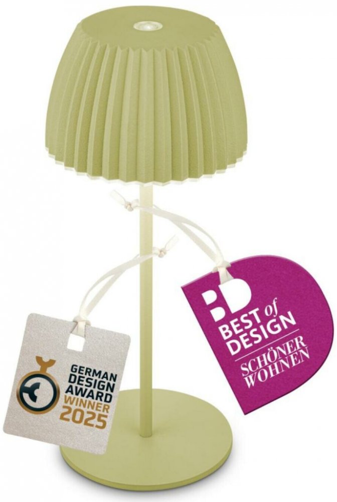 Nabíjecí stolní lampa Riffle Mini – designová ikona pro moderní interiéry i exteriéryVýjimečný design oceněný prestižními cenamiNabíjecí stolní lampa Riffle Mini je ztělesněním nejnovějších designových trendů, což dokládají ocenění German Design Award Winner 2025, Best of Design Award 2025 magazínu Schöner Wohnen a 2. místo v soutěži „Leuchte des Jahres“. Tento model představuje spojení nadčasové estetiky, funkčnosti a inovace, které ocení každý milovník interiérového designu.Flexibilita & komfort díky dotykovému stmívačiRiffle Mini nabízí plynulý dotykový stmívač, který umožňuje individuálně nastavovat intenzitu teplého bílého světla (2 700 K, 150 lm) podle momentální nálady a potřeby. Tato vlastnost je ideální pro vytvoření příjemné atmosféry – ať už při čtení, relaxaci nebo posezení na terase.Bezdrátové použití a vynikající ochrana Bezdrátové: Lampa je zcela bezdrátová, což zajišťuje maximální flexibilitu umístění. Venkovní použití: Díky krytí IP44 je chráněna proti stříkající vodě a je ideální volbou na zahradu, balkon i do interiéru.Ikonická elegance s důrazem na detailPastelově zelené provedení v kombinaci s jemně rýhovaným stínidlem a elegantní světelnou hranou dává svítidlu jedinečný charakter. Kompaktní rozměry (Ø 8,5 × 20 cm) umožňují umístit lampu na noční stolek, jídelní stůl i konferenční stolek, kde vždy vynikne jako stylový akcent.Moderní technologie a bezpečnost Výkonný vyměnitelný akumulátor: Výdrž až 24 hodin na jedno nabití (doba nabíjení 3,5 h, USB-C kabel součástí). Mechanický ON/OFF vypínač: Garantuje 100% odpojení od napájení a zabraňuje samovolnému vybíjení. Bateriový management podle EU norem: Ochrana proti hlubokému vybití dle EN62133-2, maximální bezpečnost, dlouhá životnost.Doporučení architektaRiffle Mini doporučuji klientům, kteří hledají prémiové doplňkové osvětlení do interiéru i exteriéru, oceňují čistý design, technickou preciznost a oceněnou estetiku. Skvěle zapadne do moderních i nadčasových prostor, kde se stane nejen praktickým, ale i výrazným designovým prvkem.Záruky a certifikace Záruka: 2 roky Certifikace: CE, splňuje EN62133-2 (bateriová bezpečnost) Ocenění: German Design Award Winner 2025, Best of Design Award 2025, 2. místo Leuchte des JahresObjevte dokonalý kompromis mezi designem, technologií a praktičností s lampou Riffle Mini. Pro více informací nás neváhejte kontaktovat nebo navštivte naše designové studio.