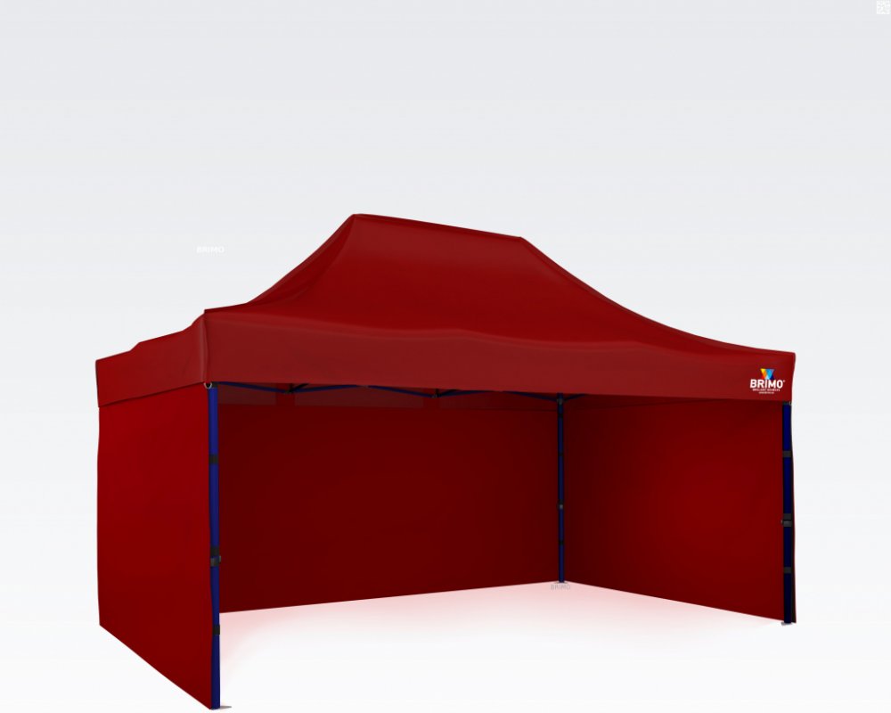 Pokud potřebujete větší prodejní prostor a nabízíte své produkty na trzích nebo festivalech je Exclusive prodejní stánek 3x4,5 m pro Vás optimálním řešením. Velmi důležitým faktorem u prodejců je rychlé a nenáročné rozložení a složení stanu. Prodejní stan 3x4,5m lze rozložit bez jakýchkoliv nástrojů pouze s několika pohyby. Díky nůžkovému samozajišťovacími systému je stánek připraven během pár minut. Při minimální námaze nabízíme maximální účinek! Na kvalitu značky Brimo se můžete spolehnout. Nejlepší zpracování, prvotřídní materiály a dlouhá životnost jsou zárukou kvalitního produktu. Prodejní stánek 3x4,5m je výsledkem inovativního ducha naší společnosti. Extrémně robustní ocelová konstrukce s nohami ve tvaru hexagonu s průměrem 45 mm zajistí stabilitu stánku. Jednoduchá a přitom pevná konstrukce je orientována na požadavky denního používání. Tmavomodré provedení konstrukce dodává stánku atraktivní design, který zaujme na první pohled. Boční stěny nabízejí různá řešení použití a flexibility. Upevnění stěn se provádí pomocí suchého zipu který je 5 cm široký a zajišťuje stabilní aplikaci stěn. Bočnice se upevňují o střechu a o nohy stanu. Tímto způsobem získáte univerzálnost stánku a v této jednoduché kombinaci můžete snadno realizovat své nápady. Chcete-li se odlišit od velkého počtu vystavovatelů nabízíme Vám různé druhy potisku. Obzvláště dostatek prostoru pro velkoplošnou reklamu poskytují uzavřené stěny. Prostřednictvím grafického zobrazení sortimentu nebo výstižným reklamním sloganem vytvoříte originální propagaci Vaší společnosti. Zaregistrujte se a získejte slevu 150 Kč na každý objednaný stánek.