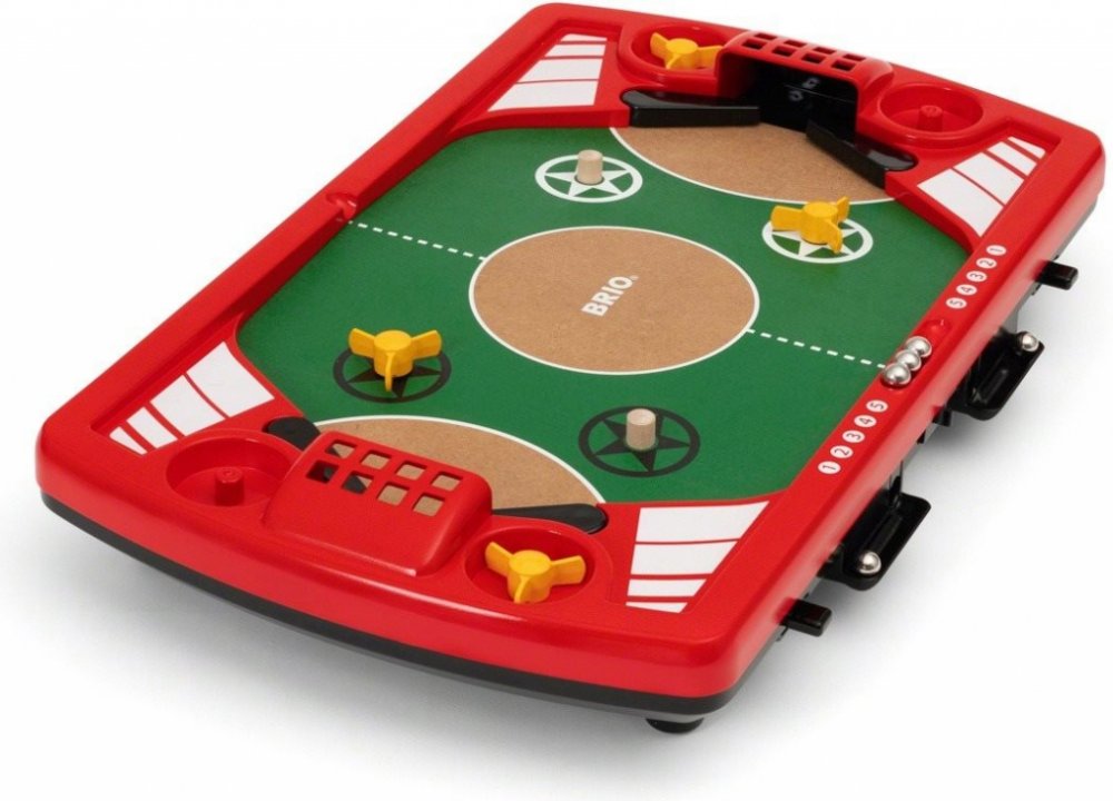Hra Pinball je vzrušující hra pro dva hráče. Mísí se zde krásný design a zábavné funkce. Musíte být velmi rychlí, abyste dokázali vašemu soupeři vstřelit gól. Pokud chcete hru ztížit, přidejte na hrací plochu rotační vrtulky, které mohou změnit rychlost a směr kovové kuličky, a to naprosto nečekaným způsobem. Jakmile hra skončí, uložte kovové kuličky do úložného prostoru skrytého pod herní plochou...